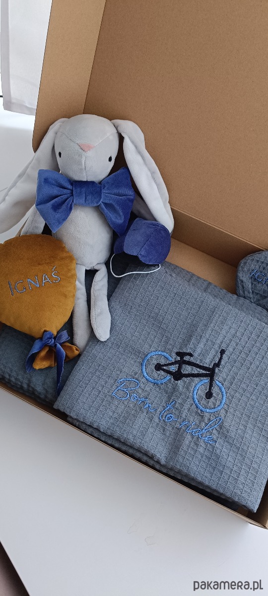 Szyty na zamówienie i może być dowolnie modyfikowany (posiadać inny kolor, różne ubranka, dodatki) tak aby pasował do dziecka do którego ma trafić. Im więcej danych, tym bardziej trafiony prezent. Na brzuszku, na ubranku, kokardzie lub skrzydełkach ( jeśli mają być) haftujemy imię dziecka. Króliczki wykonujemy z bardzo przyjemnego materiału - minky, posiadają antyalergiczne wypełnienie.