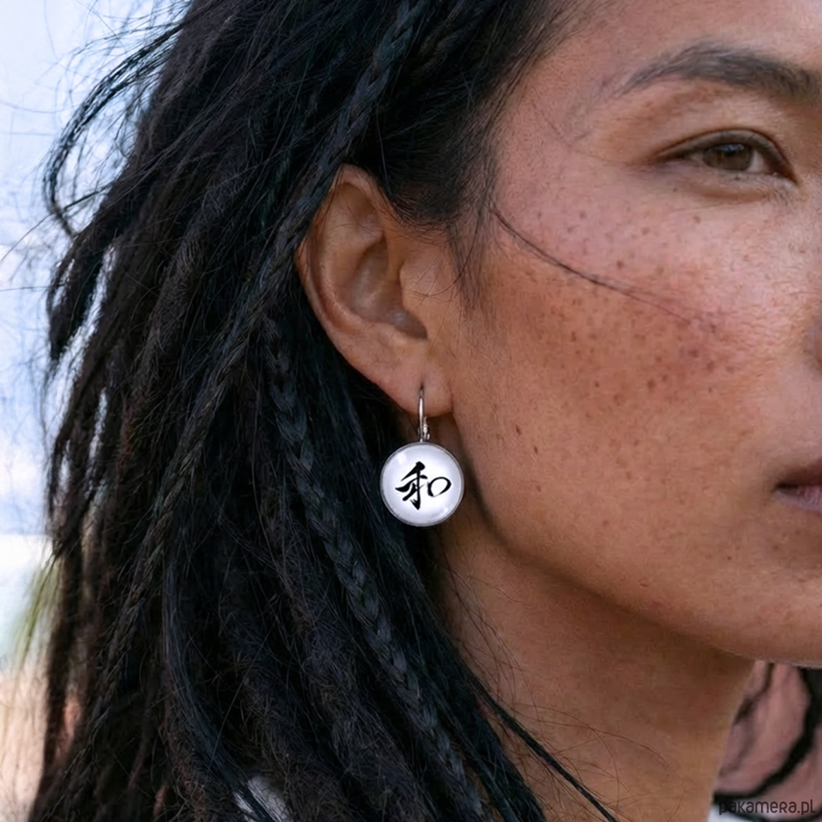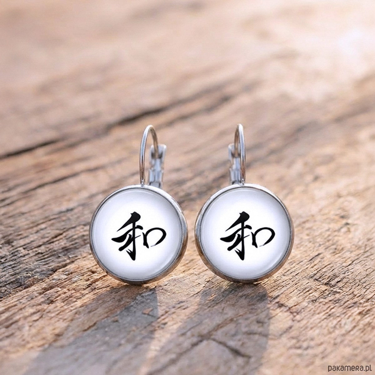 Wyjątkowe kolczyki z miniaturą grafiki – japońska kaligrafia „Nagomi”