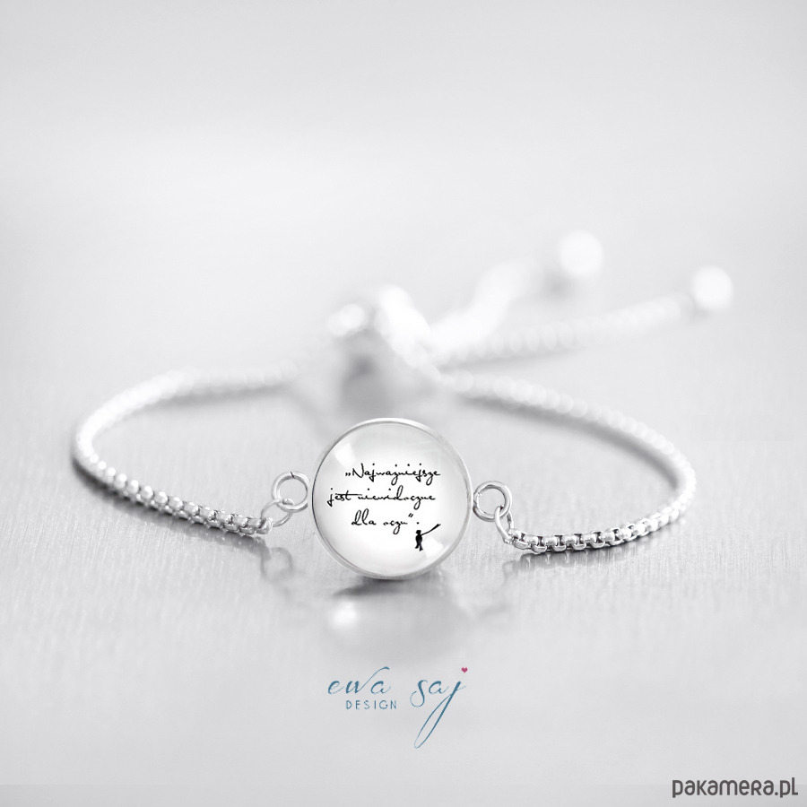 Piękna, delikatna, kobieca bransoletka wykonana ze stali nierdzewnej. Autorska grafika z kolekcji Mały książę została ukryta pod 16 mm wypukłym szkiełkiem. Silikonowy zacisk pozwala dostosować bransoletkę do każdego nadgarstka