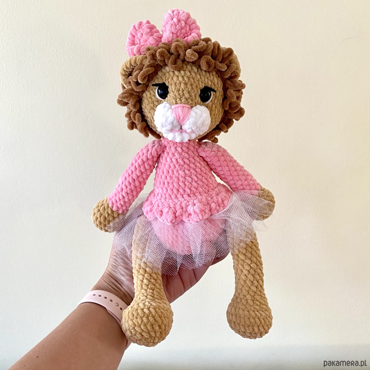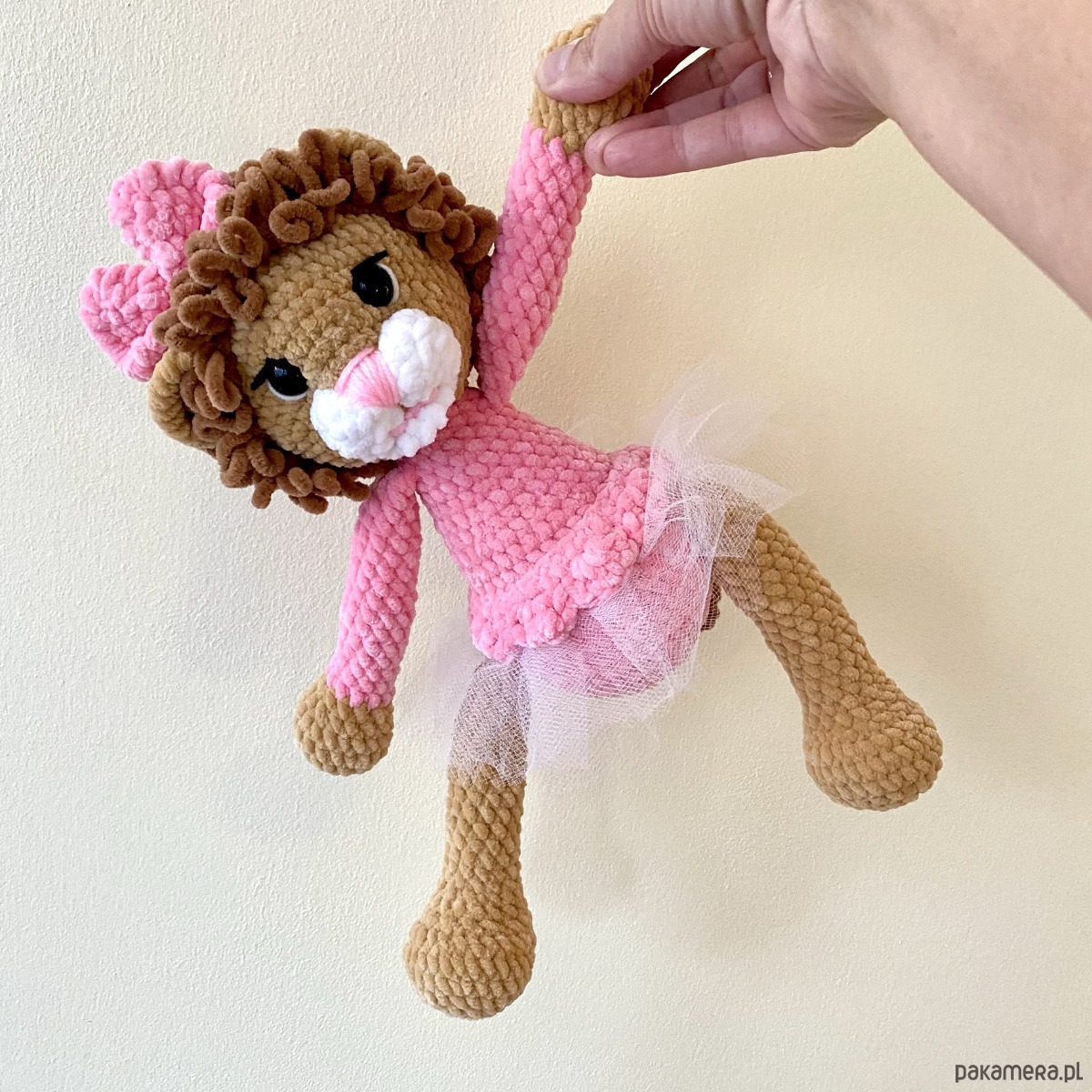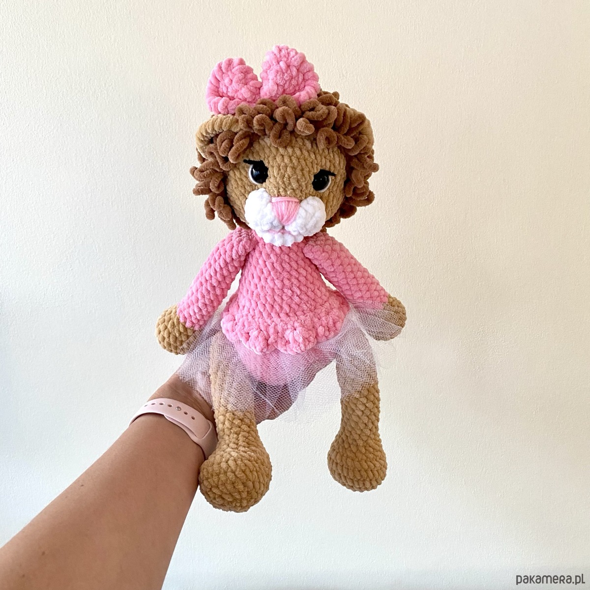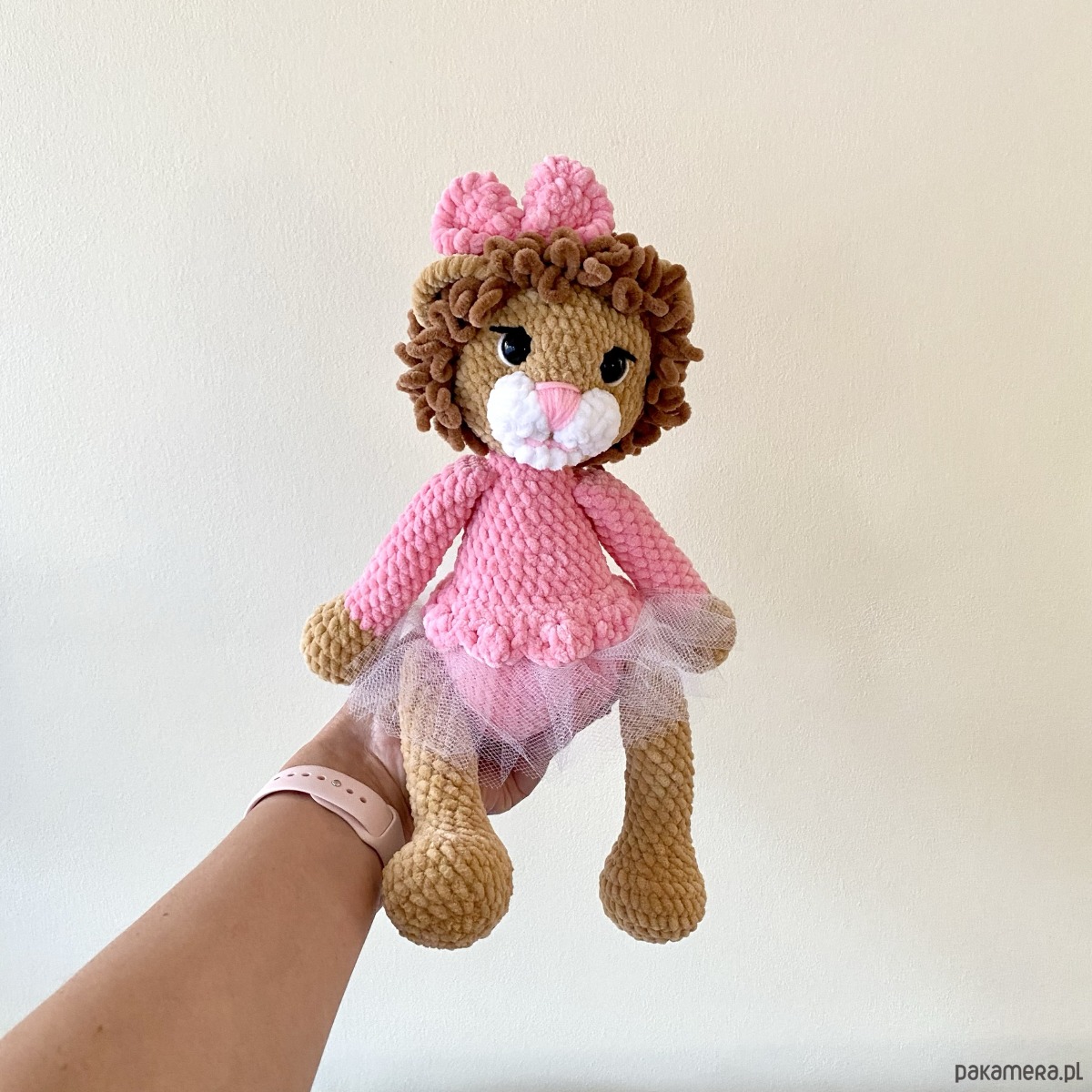 Małe lwiątko w delikatnej tiulowej spódniczce, z kokardką na główce.
