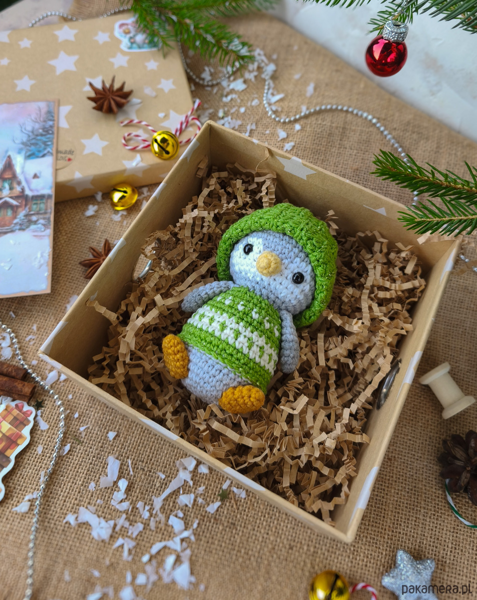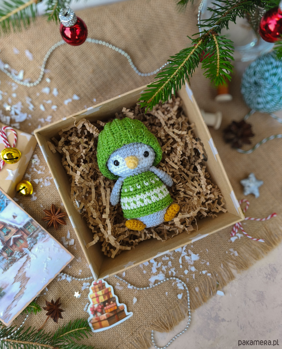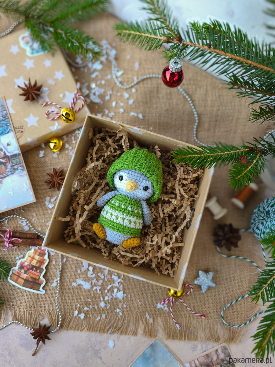 Mały zabawny pingwinek będzie uroczym upominkiem na Święta Bożego Narodzenia lub przytulnym prezentem dla maluszków na wiele różnych okazji.