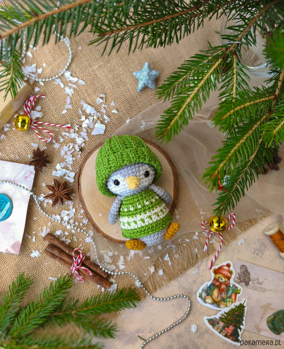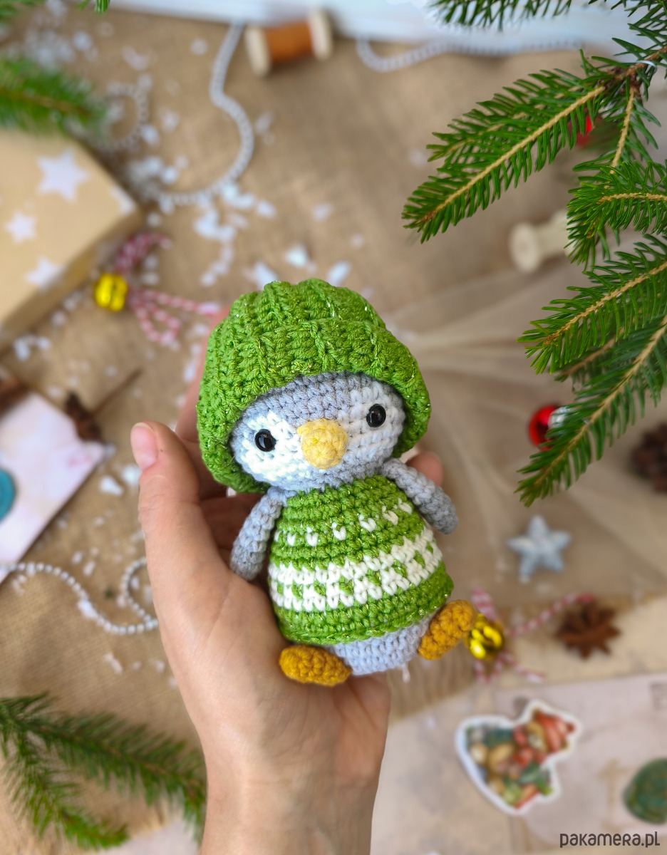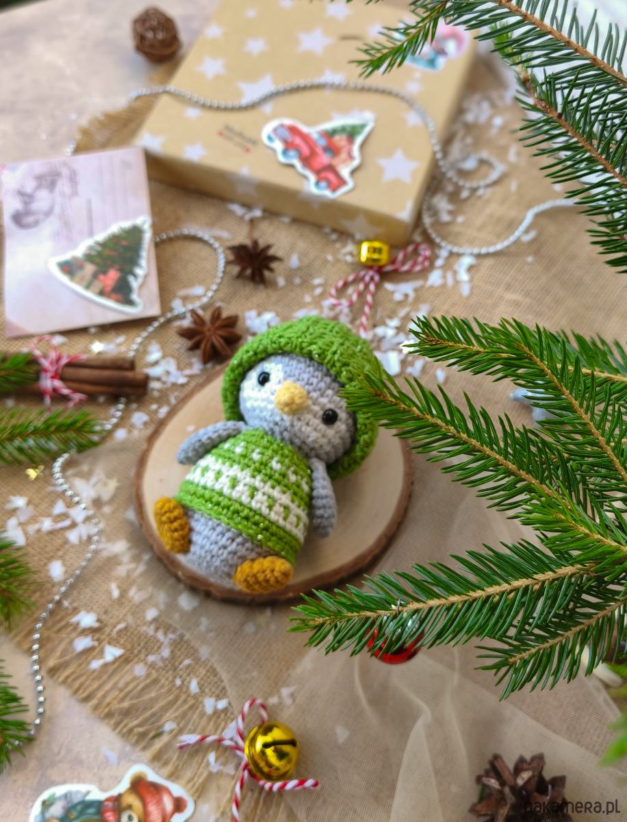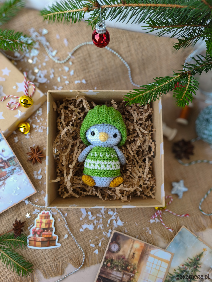 Mały zabawny pingwinek będzie uroczym upominkiem na Święta Bożego Narodzenia lub przytulnym prezentem dla maluszków na wiele różnych okazji.