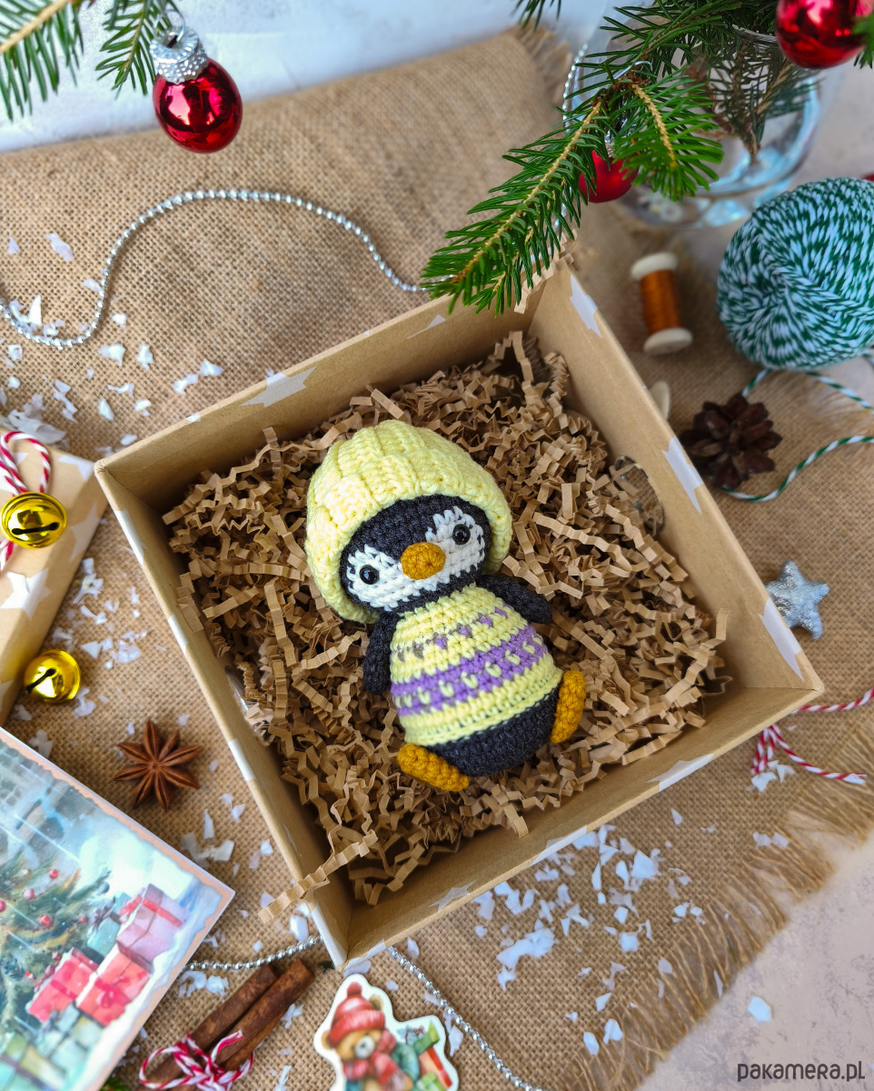 Mały zabawny pingwinek będzie uroczym upominkiem na Święta Bożego Narodzenia lub przytulnym prezentem dla maluszków na wiele różnych okazji.