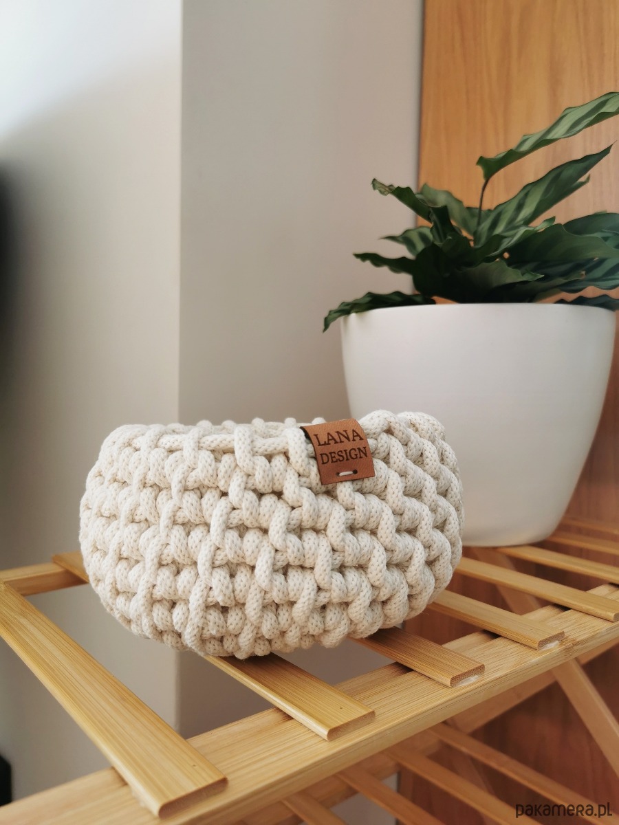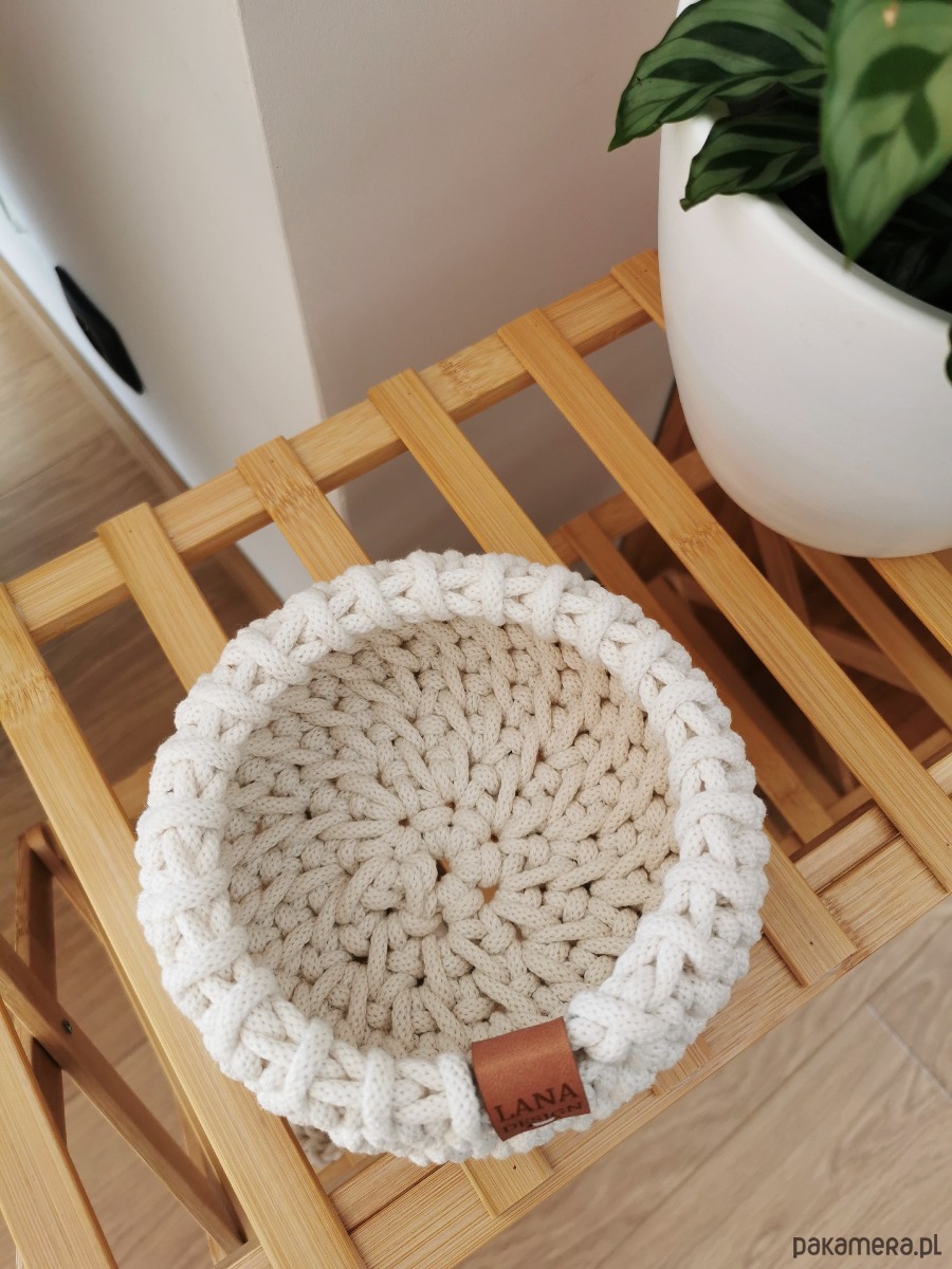 Ten mały pleciony koszyk z bawełnianego sznurka to drobny detal, który wprowadza do domu porządek i naturalne ciepło. Ręcznie wykonany, z gęstym i starannym splotem, jest jednocześnie trwały i miękki w odbiorze. Jego prosta forma sprawia, że pasuje do wielu wnętrz – od minimalistycznych, przez skandynawskie, aż po rustykalne i boho.