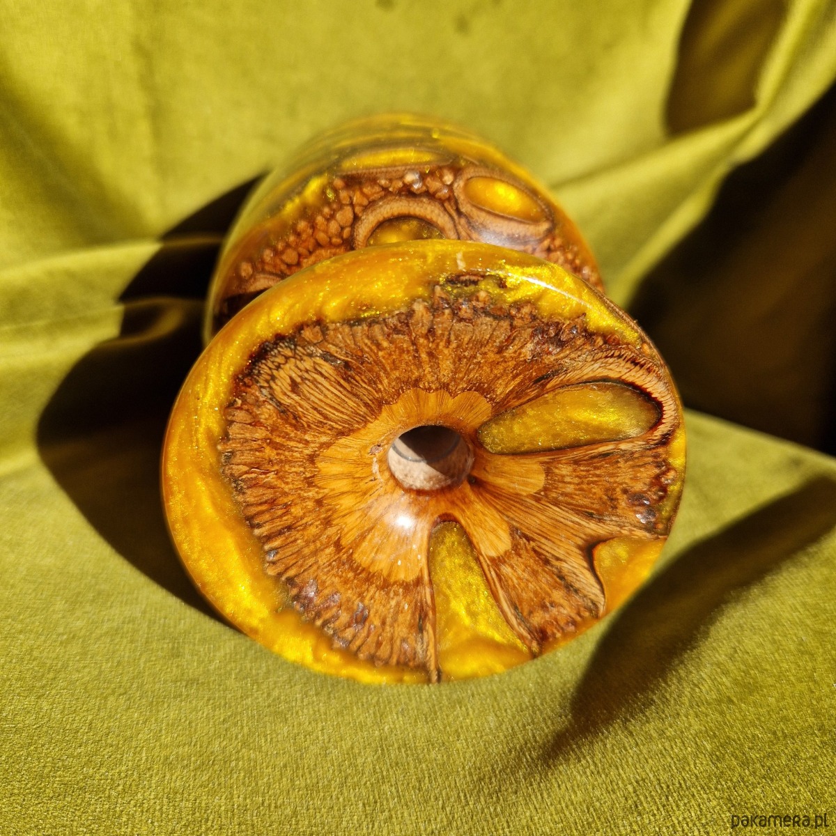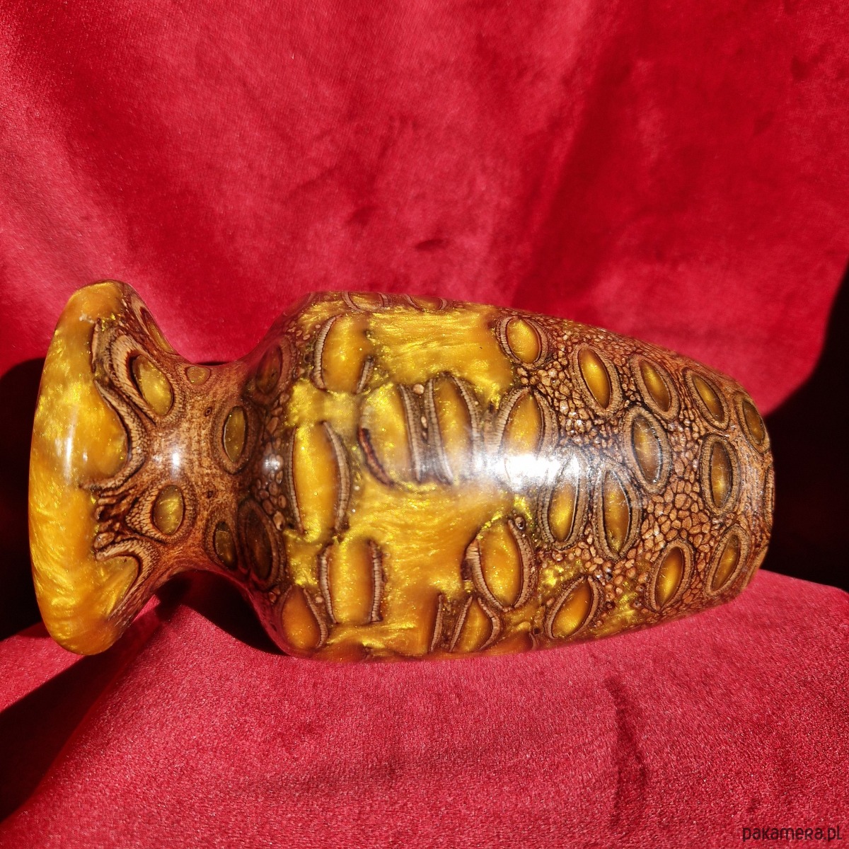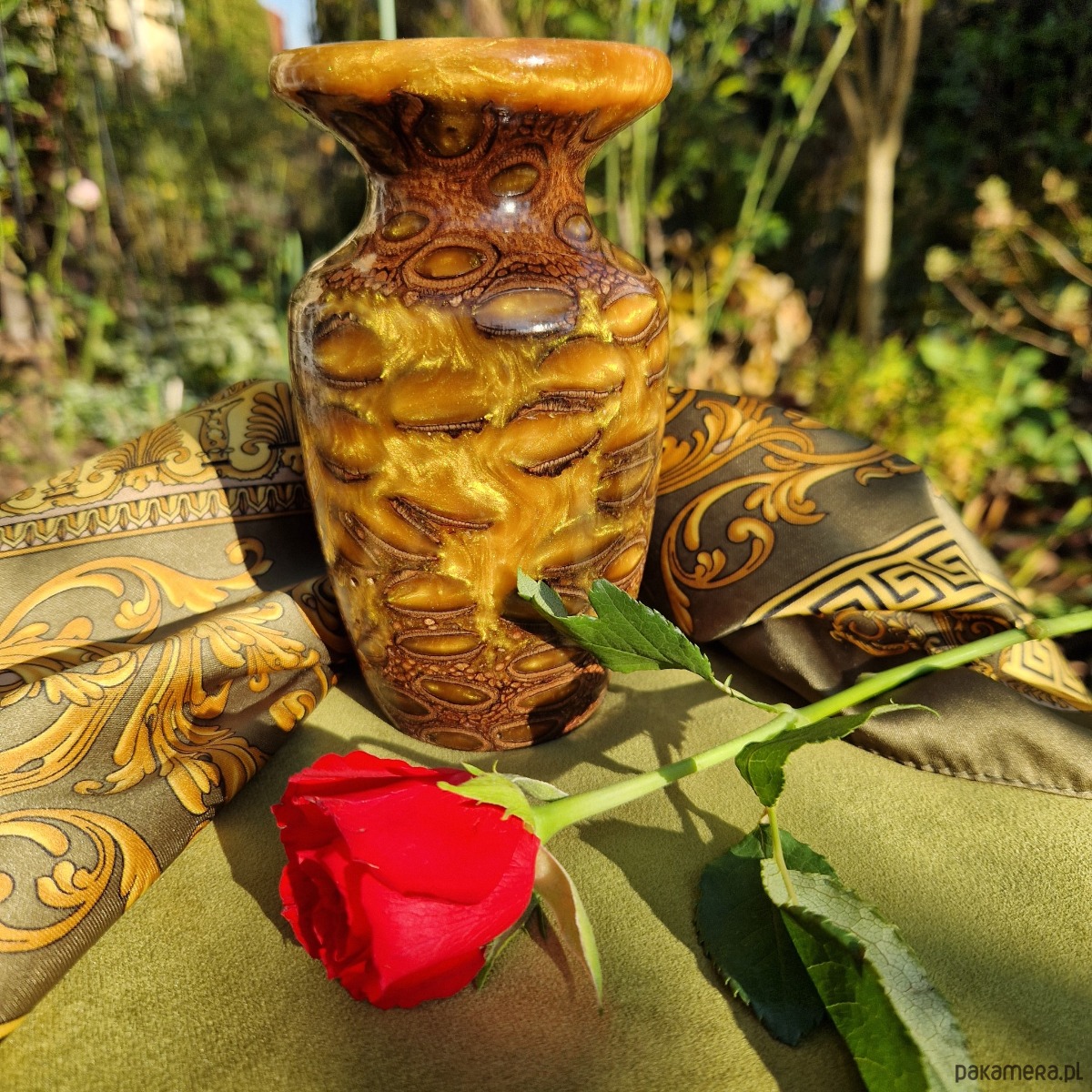 Mały ręcznie robiony wazon (złota żywica epoksydowa i banksja)