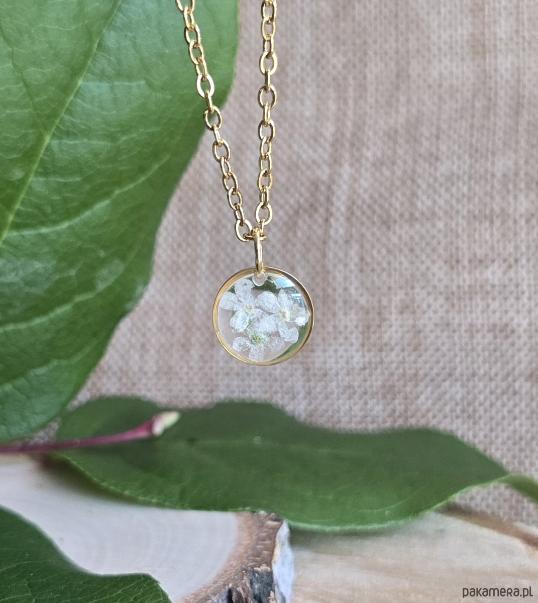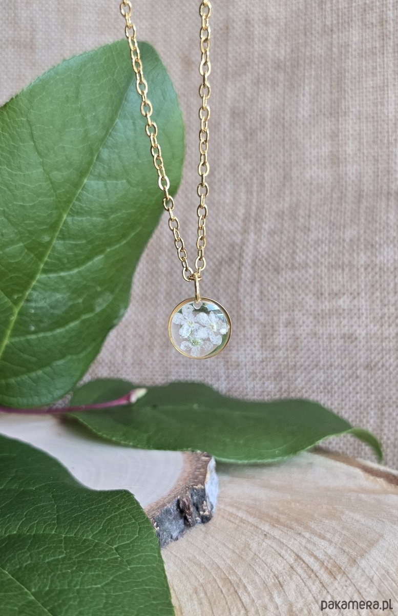 Oferuję Państwu unikalną biżuterię. Zawieszka jest wykonana z suszonych kwiatów i żywicy epoksydowej. Biżuteria jest wspaniałym i oryginalnym prezentem na lata.
