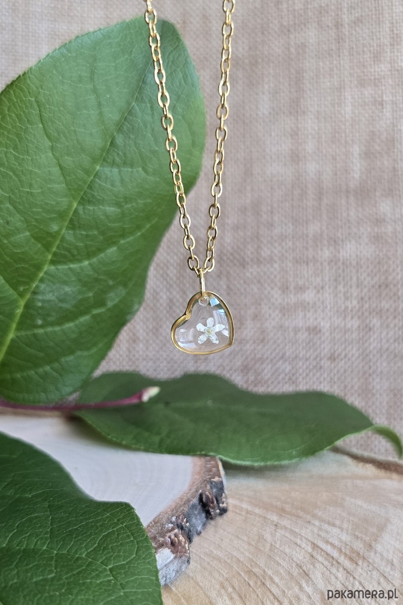 Oferuję Państwu unikalną biżuterię. Zawieszka jest wykonana z suszonych kwiatów i żywicy epoksydowej. Biżuteria jest wspaniałym i oryginalnym prezentem na lata.