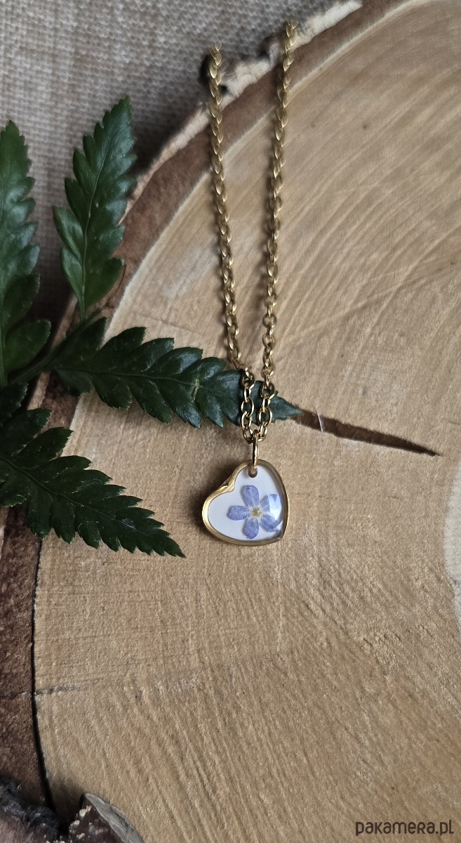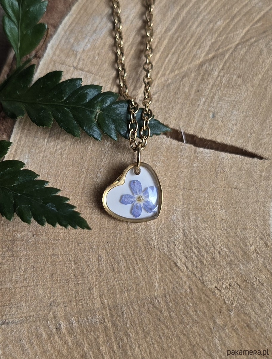 Mały wisiorek z kwiatem prawdziwy kwiat serce serduszko