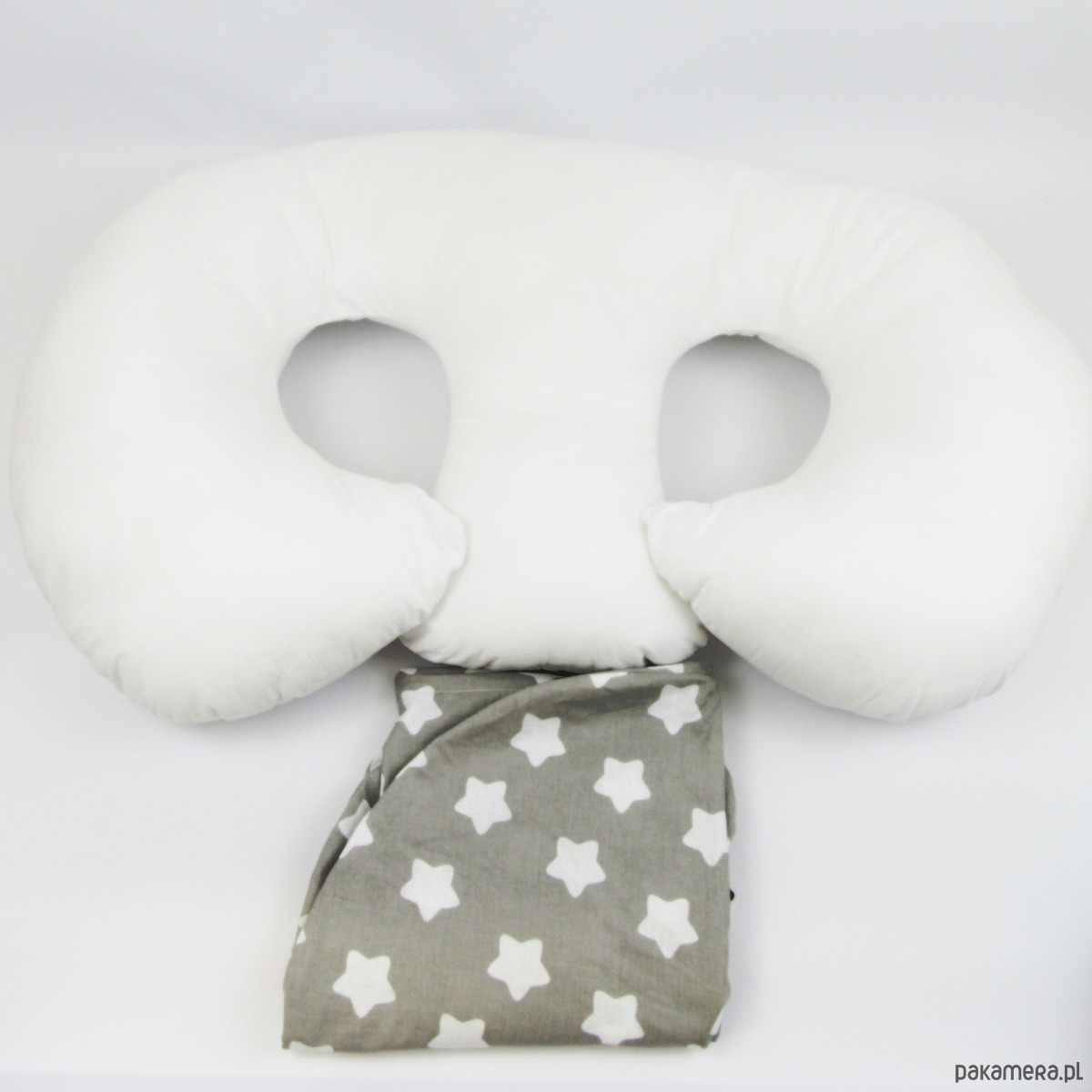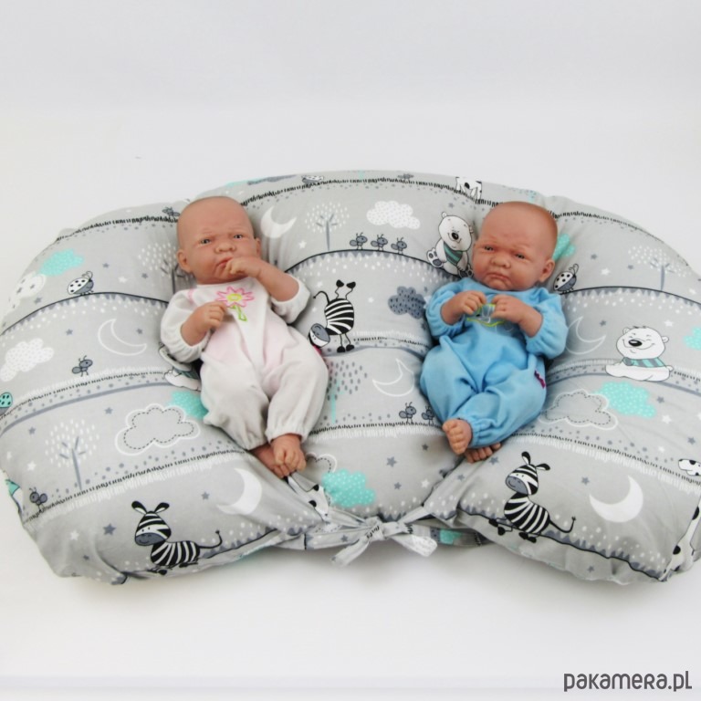 Nasze poduszki do karmienia bliźniąt zostały zaprojektowane z myślą o komforcie karmiącej mamy oraz jej dzieci. Do produkcji używamy tylko materiałów posiadających odpowiednie certyfikaty. Jako wypełnienie stosujemy antyalergiczny puch silikonowy, który jest bardziej delikatny niż popularna silikonowa kulka. Nasza poduszka nie posiada żadnych wystających lub niebezpiecznych dla dziecka elementów. Zamocowane troczki pozwalają na łatwe ustalenie pożądanej szerokości poduszki - rośnie ona wraz z dziećmi. Kiedy maleństwa będą już większe, poduszka świetnie się sprawdzi jako podpora w czasie ich siedzenia.
