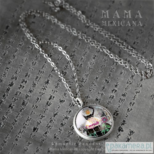 Delikatny, romantyczny, oryginalny, zaczarowany naszyjnik ze stali szlachetnej. Miniaturka mojej fotografii - przedstawia fragment pięknej meksykańskiej mozaik -i ukryta pod szklaną kopułą przeźroczystego szkiełka.Umieszczona na prostym medalionie o średnicy 16 mm zawieszonym na łańcuszku długim na 46 cm. Zrób sobie prezent!