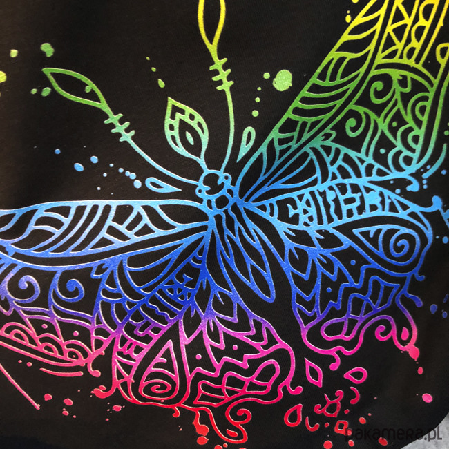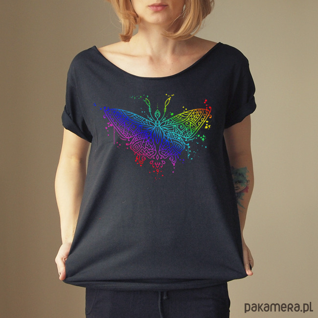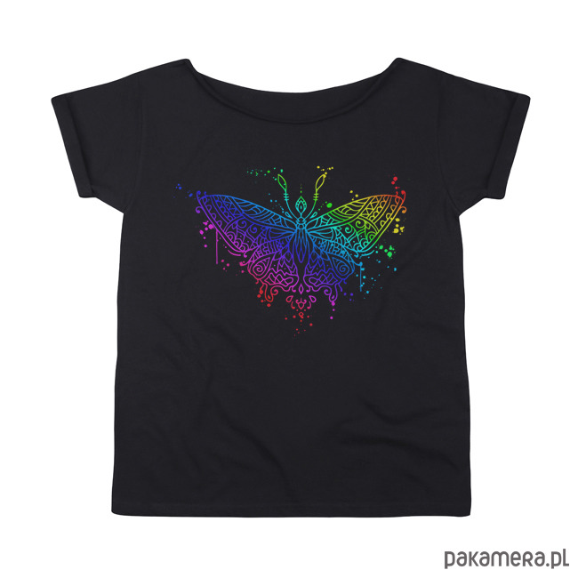 Koszulka z pięknym tęczowym wzorem motyla.