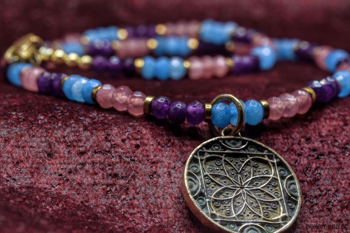 Mandala - Naszyjnik z brązu na na naturalnych kamieniach