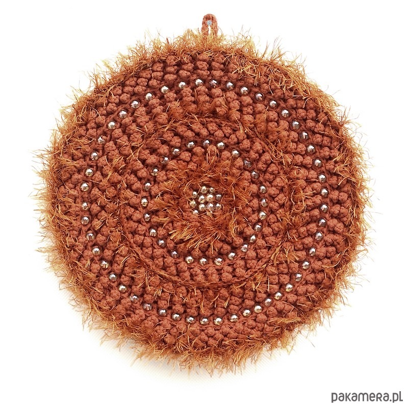 Zawieszka dekoracyjna Mandi to szydełkowa wariacja w apetycznym karmelowym kolorze.