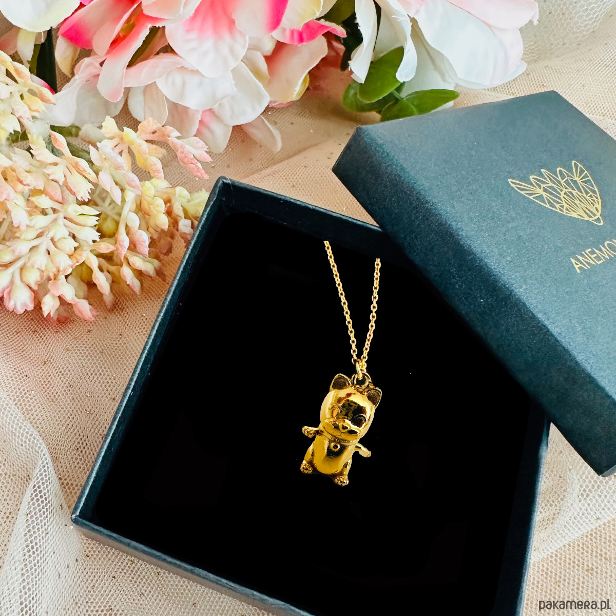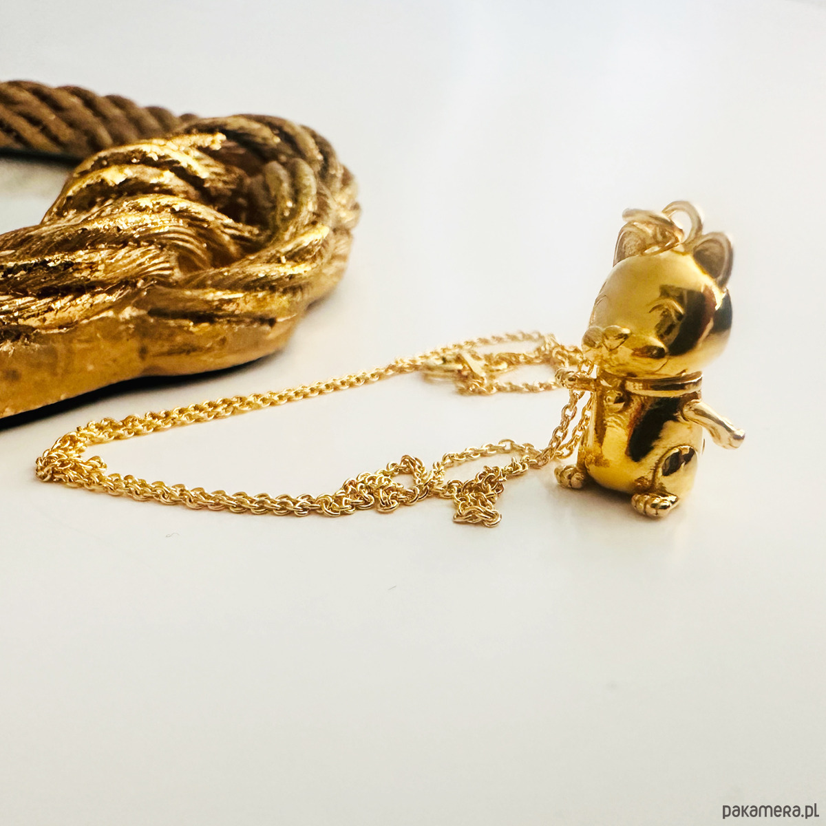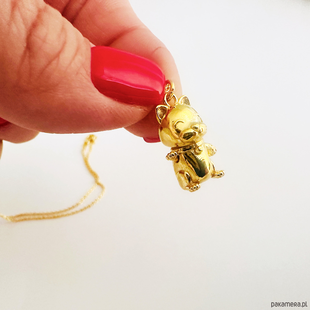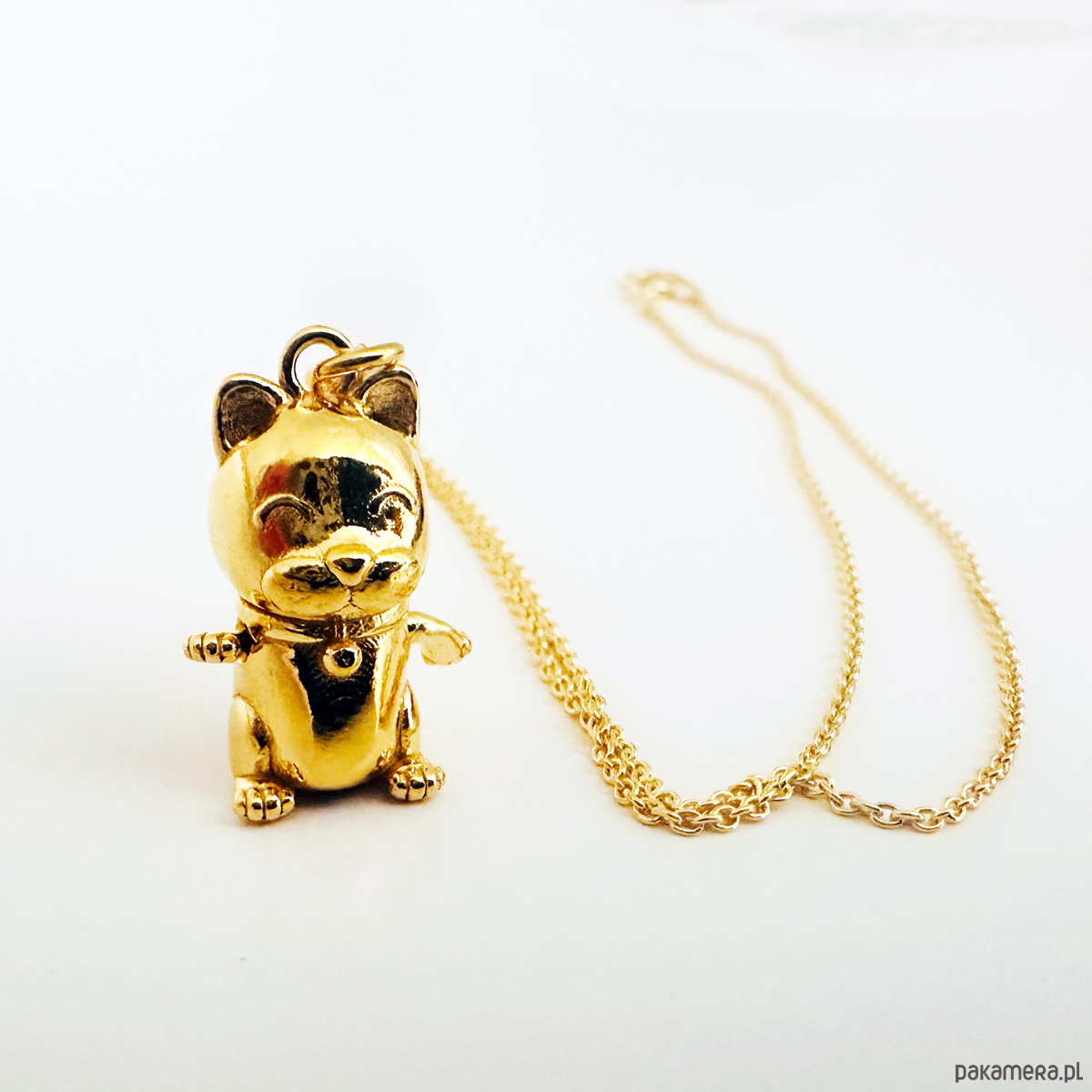 MANEKI NEKO Naszyjnik z kotem, złoty kotek na szczęście