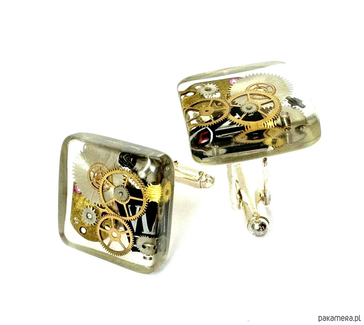 Po raz pierwszy prezentujemy Wam naszą nową, ekskluzywną linię ręcznie wykonywanych spinek dla prawdziwego eleganta. Dla mężczyzny, który ceni sobie smak i wyjątkowość. Każda para z linii "MAN'S PRECIOUS" jest unikalna i niepowtarzalna. I nigdy nie powstania identyczna. Dlatego też jeśli jesteś mężczyzną ekstrawaganckim, lubiącym się wyróżnić i zwrócić na siebie uwagę - to spinki zdecydowanie dla Ciebie. W linii "MAN'S PRECOIUS" każda ze spinek w parze cechuje się dokładnie taką samą liczbą i rodzajem ręcznie układanych elementów starych zegarków a dodatkowego charakteru nadają im zeszlifowane krawędzie. Te ręcznie wykonane, posrebrzane spinki do mankietów - to idealny prezent dla każdego mężczyzny, który ceni sobie szyk i elegancję.