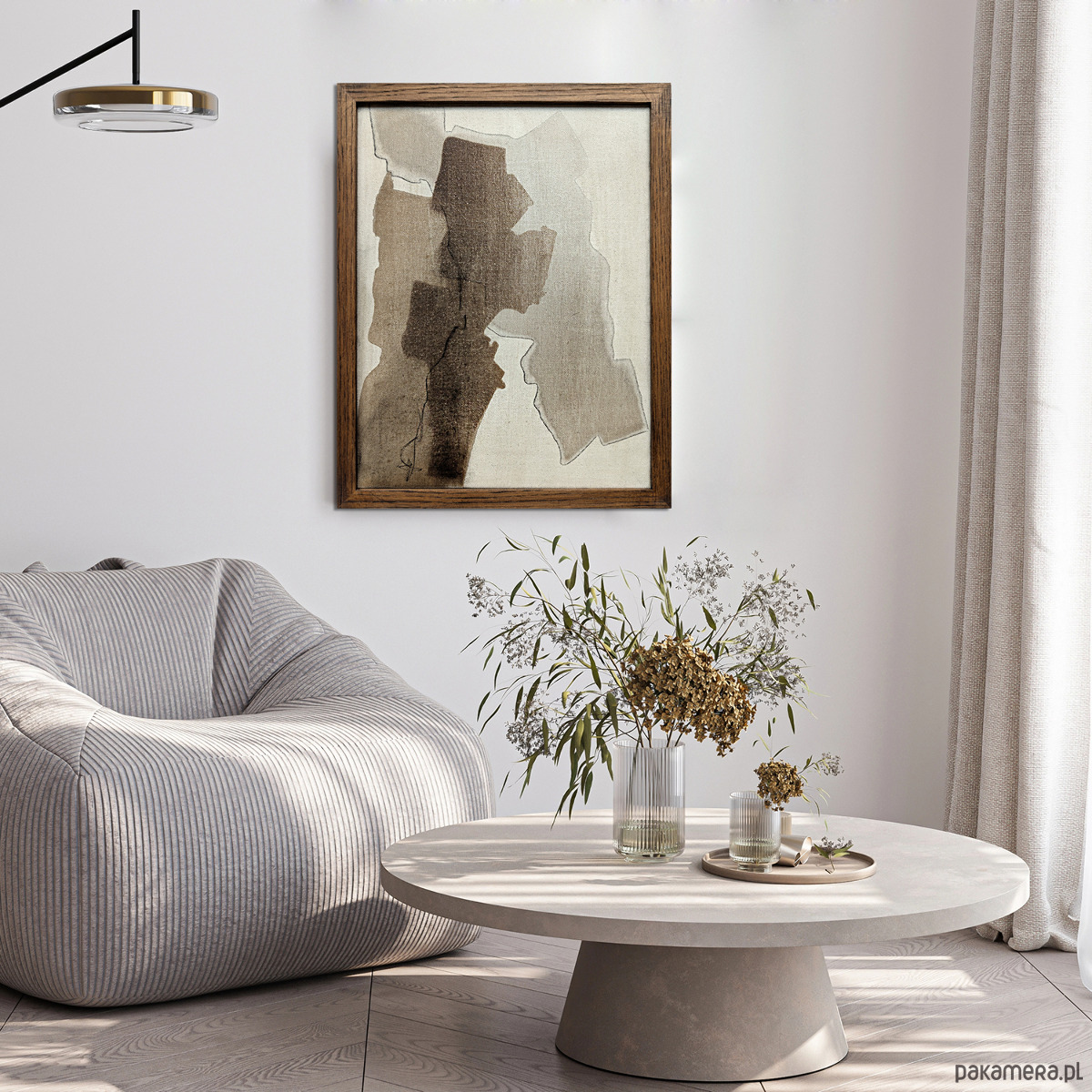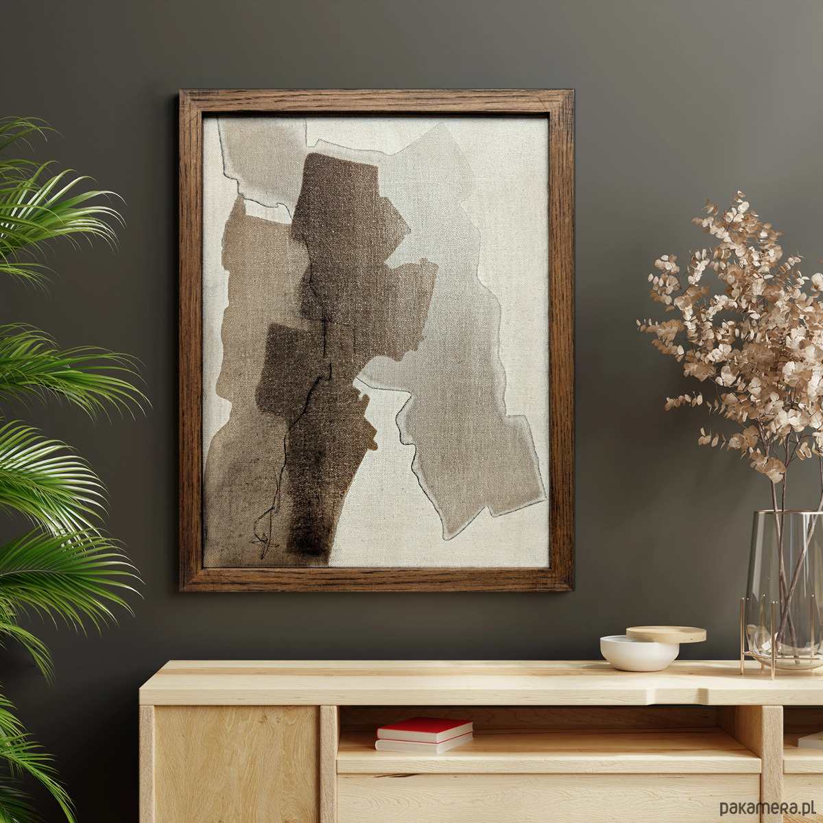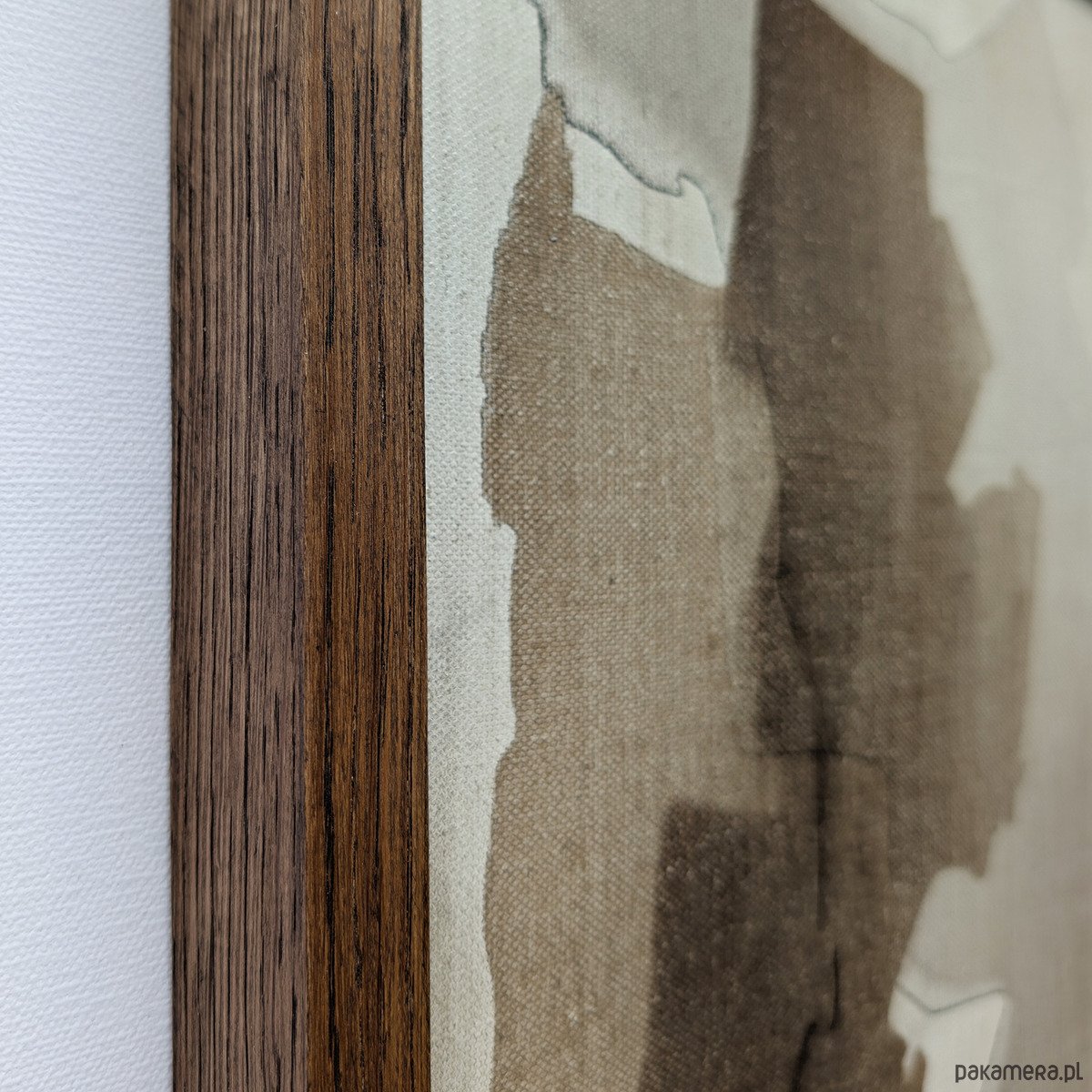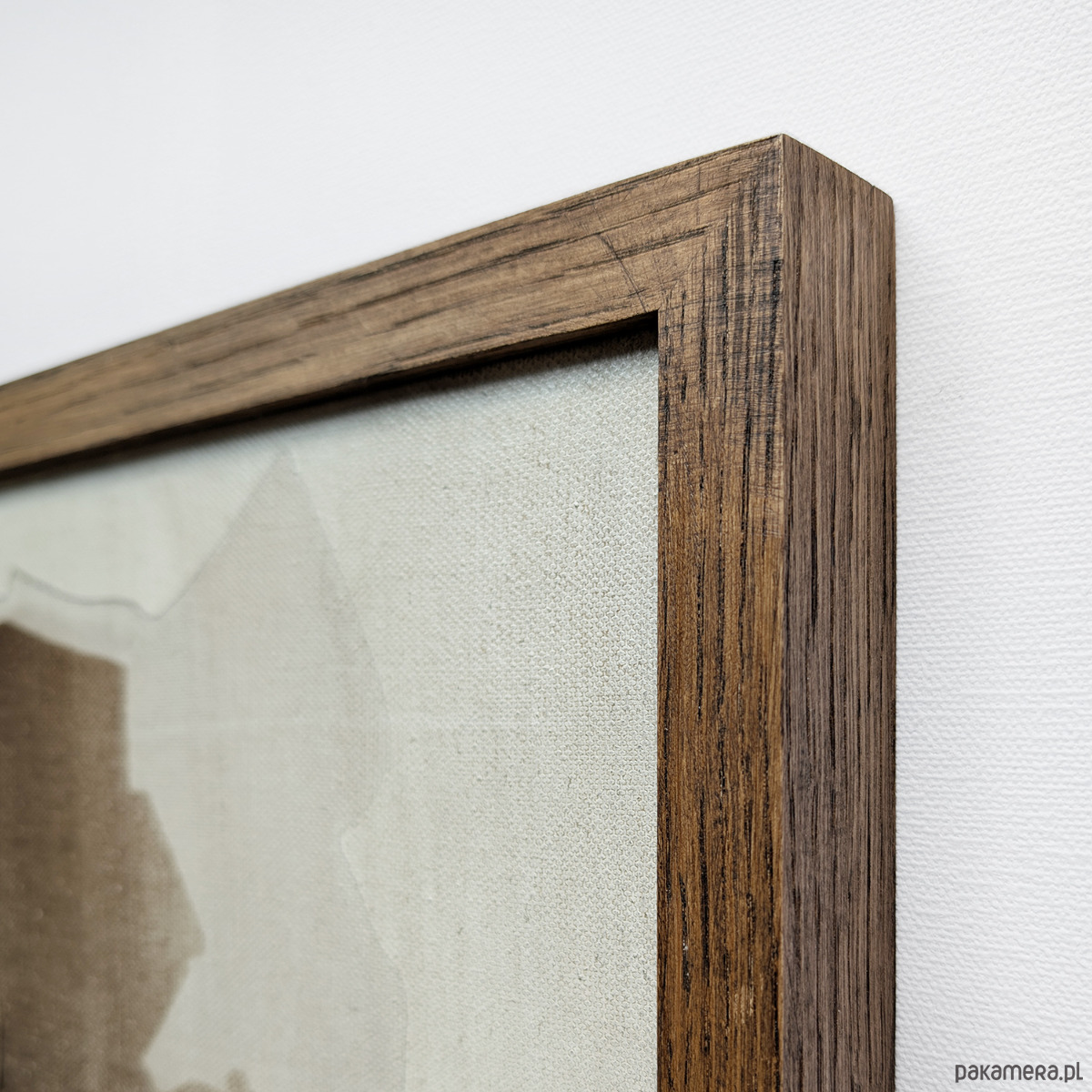 oprawiony w dębową ramę z naturalnego drewna