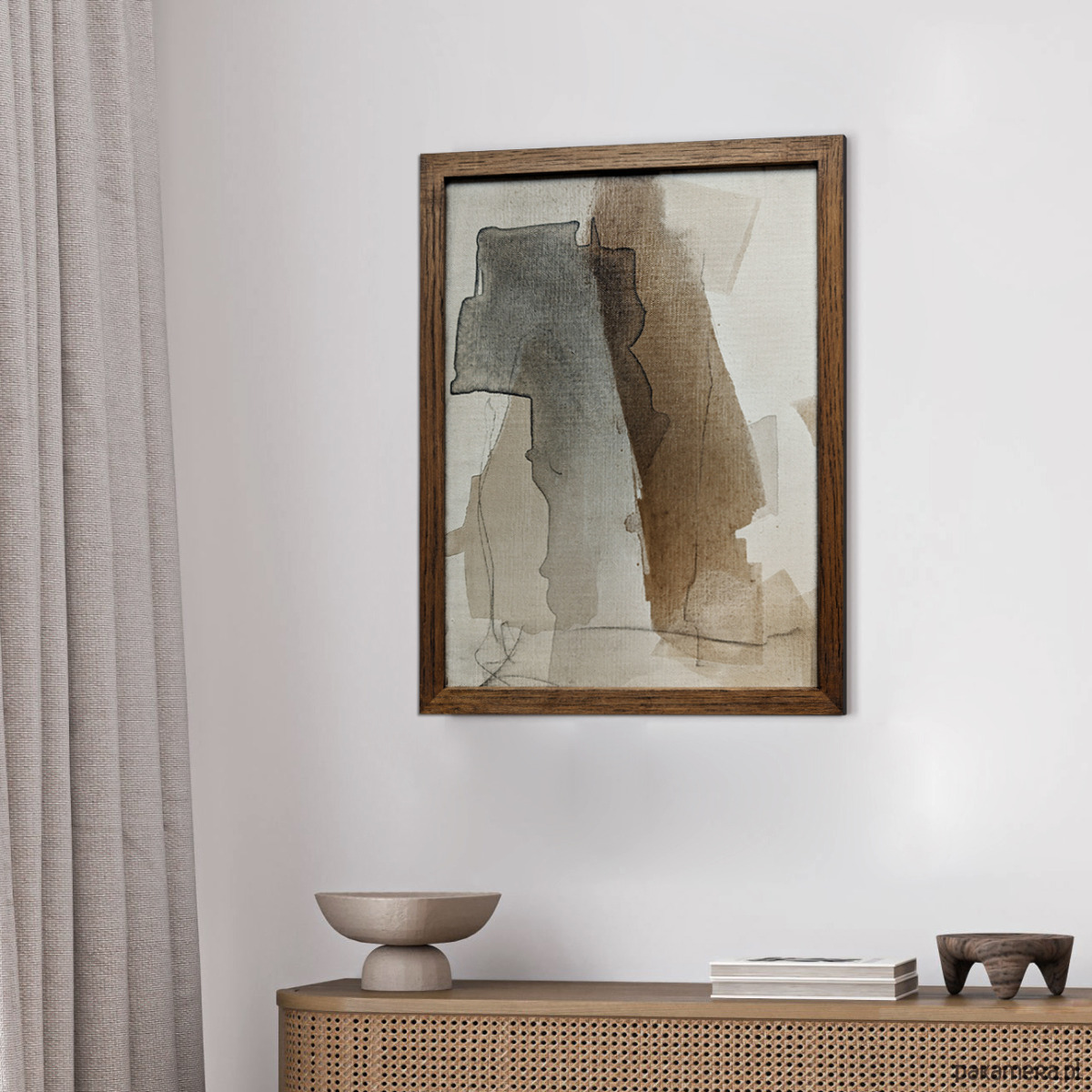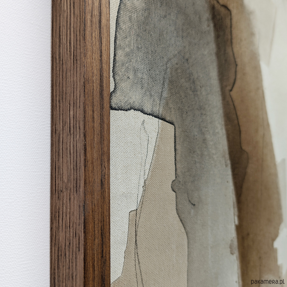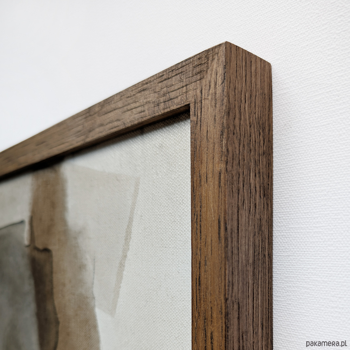 oprawiony w dębową ramę z naturalnego drewna