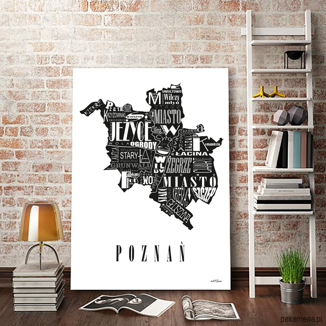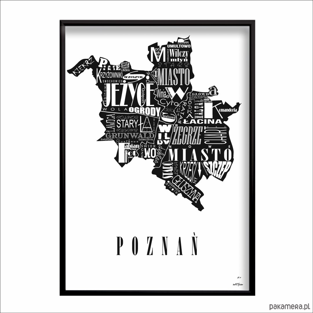 Mapa - POZNAŃ plakat czarno biały