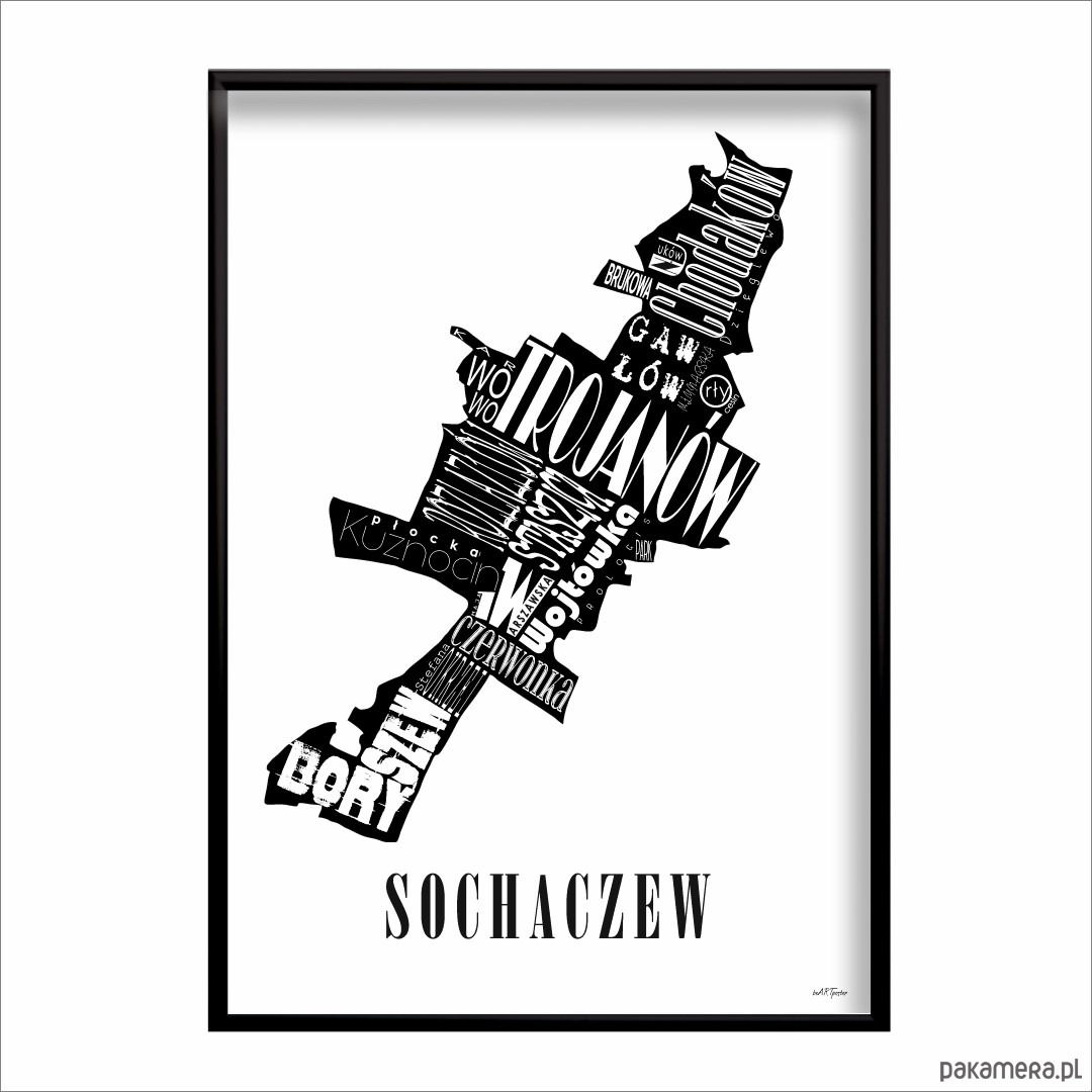 Mapa - SOCHACZEW plakat czarno biały