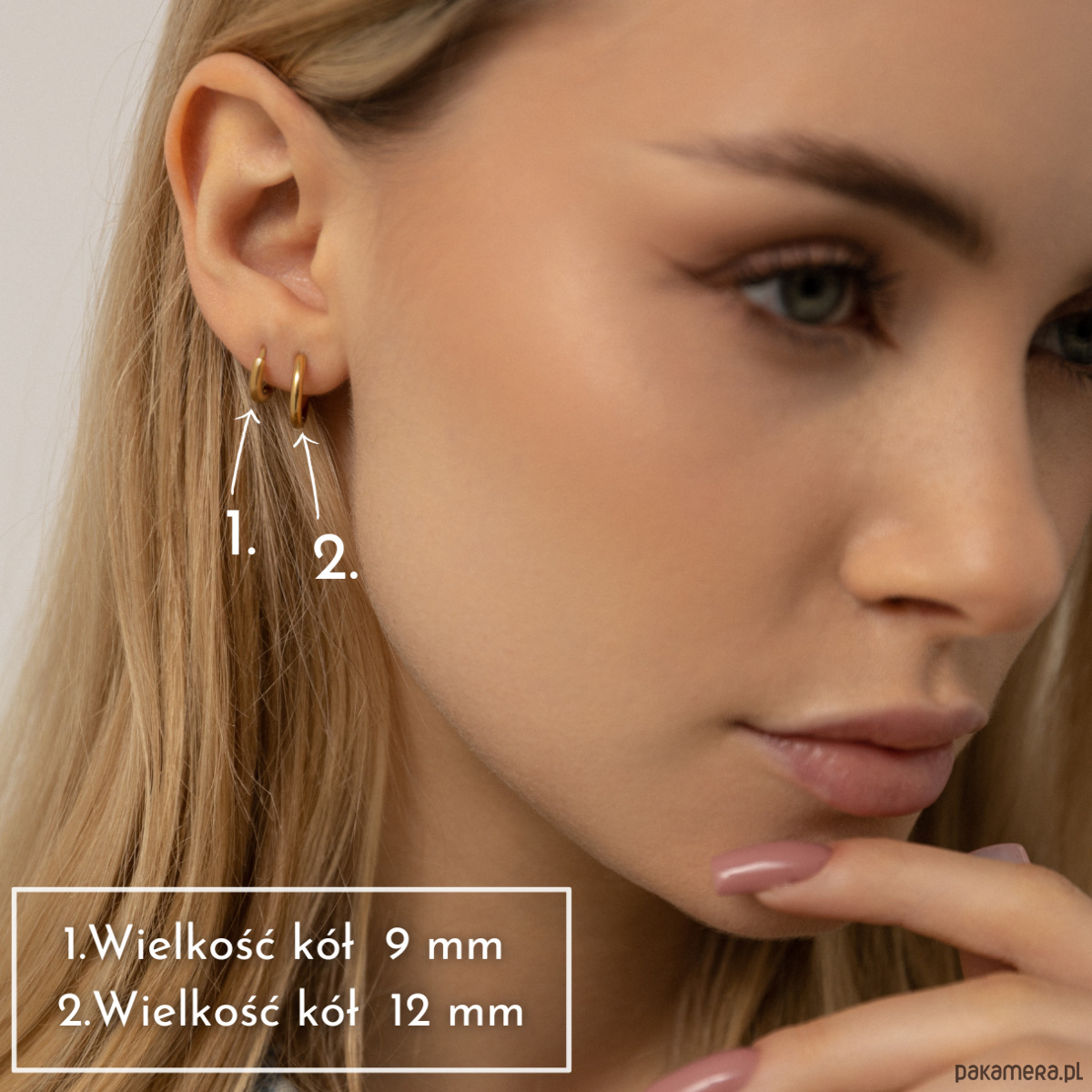 Kolczyki wykonane są z antyalergicznej stali szlachetnej pozłacanej, która nie uczula. Bez obaw, pozłocenie pięknie się utrzymuje, nie ciemnieje i nie wyciera.