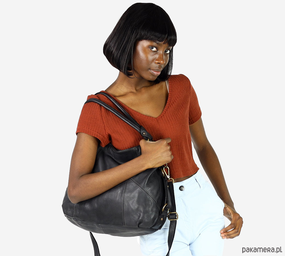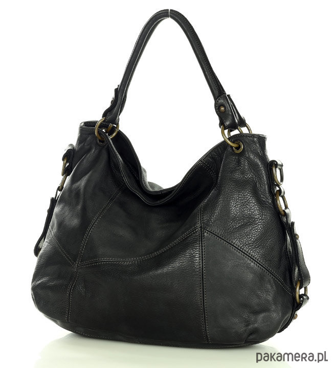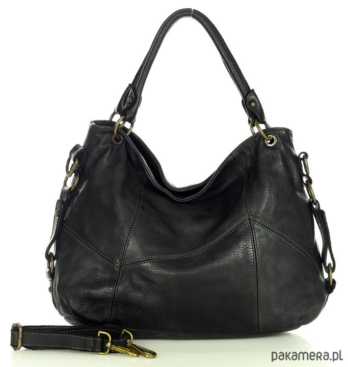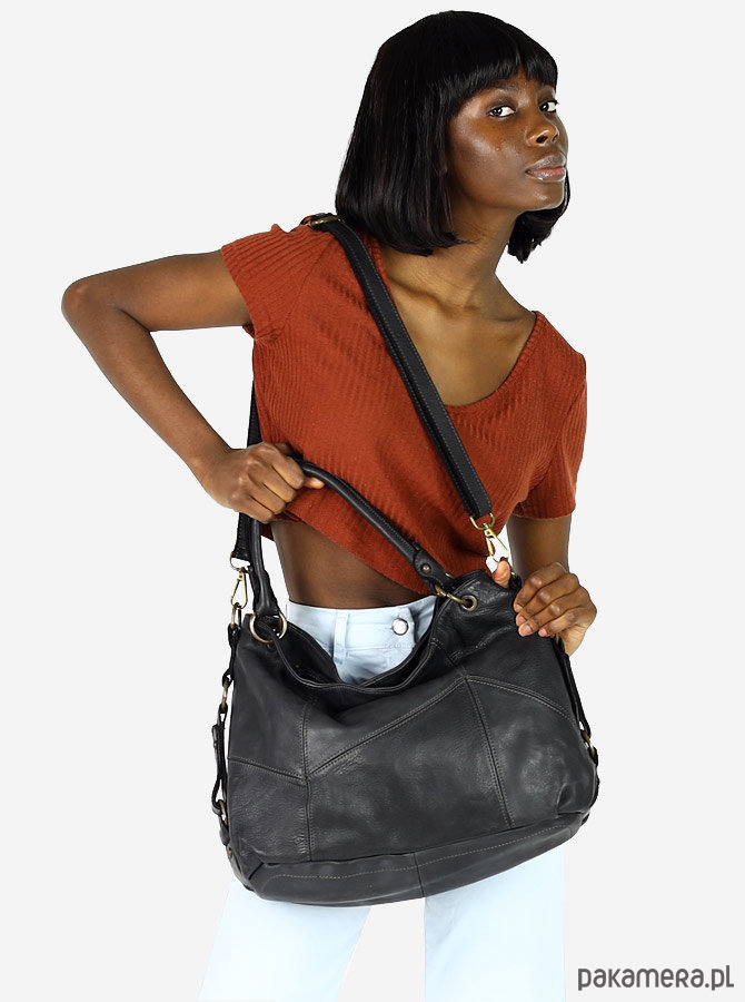 MARCO MAZZINI Miejska torebka skórzana na ramię city sholder handmade bag czarny