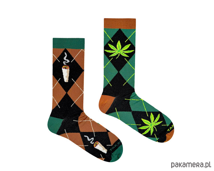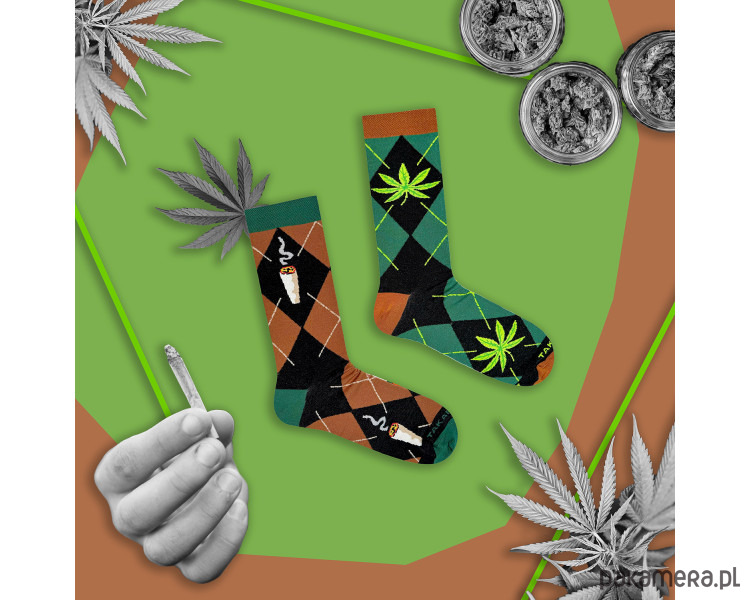 Te wyjątkowe skarpetki z marihuaną są kwintesencją relaksu. Na jednej z nich znajdują się liście cannabis na tle zielonych rombów, symbolizujące naturę i spokój. Druga skarpeta, z motywem dymiącego skręta na tle brązowych rombów, przypomina o chwilach odpoczynku. Ciekawostka: Wiele kultur na przestrzeni wieków wykorzystywało naturalne elementy do osiągnięcia stanu relaksu i medytacji. Te skarpetki, z ich barwnymi wzorami i wysokiej jakości bawełną, zapewnią nie tylko komfort dla Twoich stóp, ale również będą przypomnieniem o znaczeniu odpoczynku w codziennym życiu.
