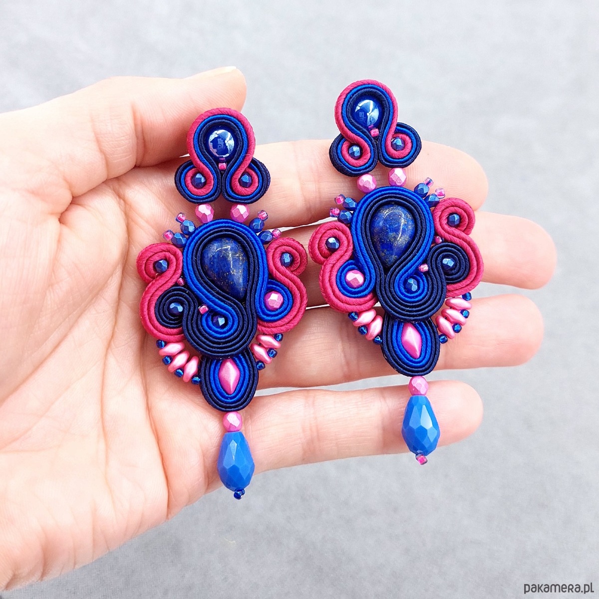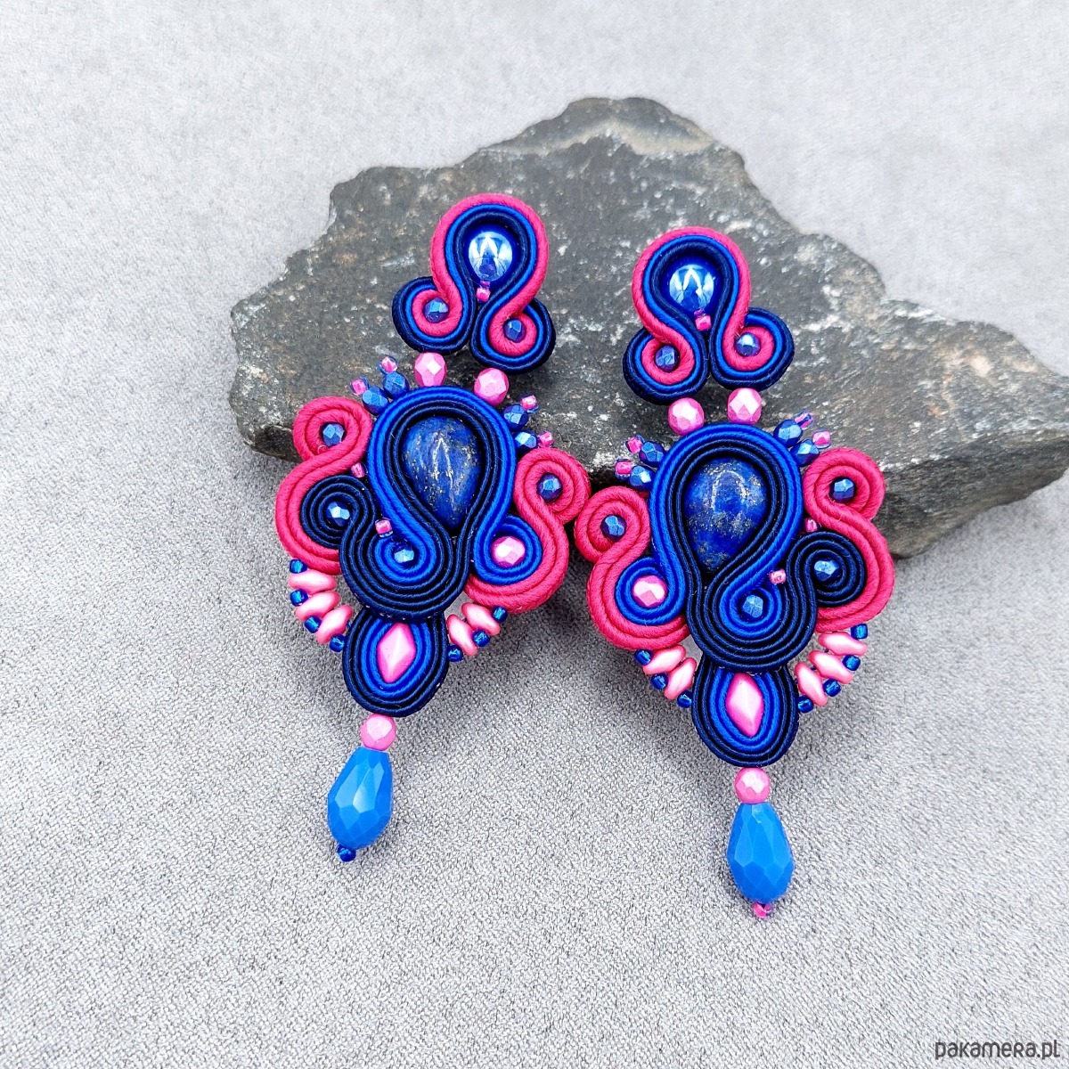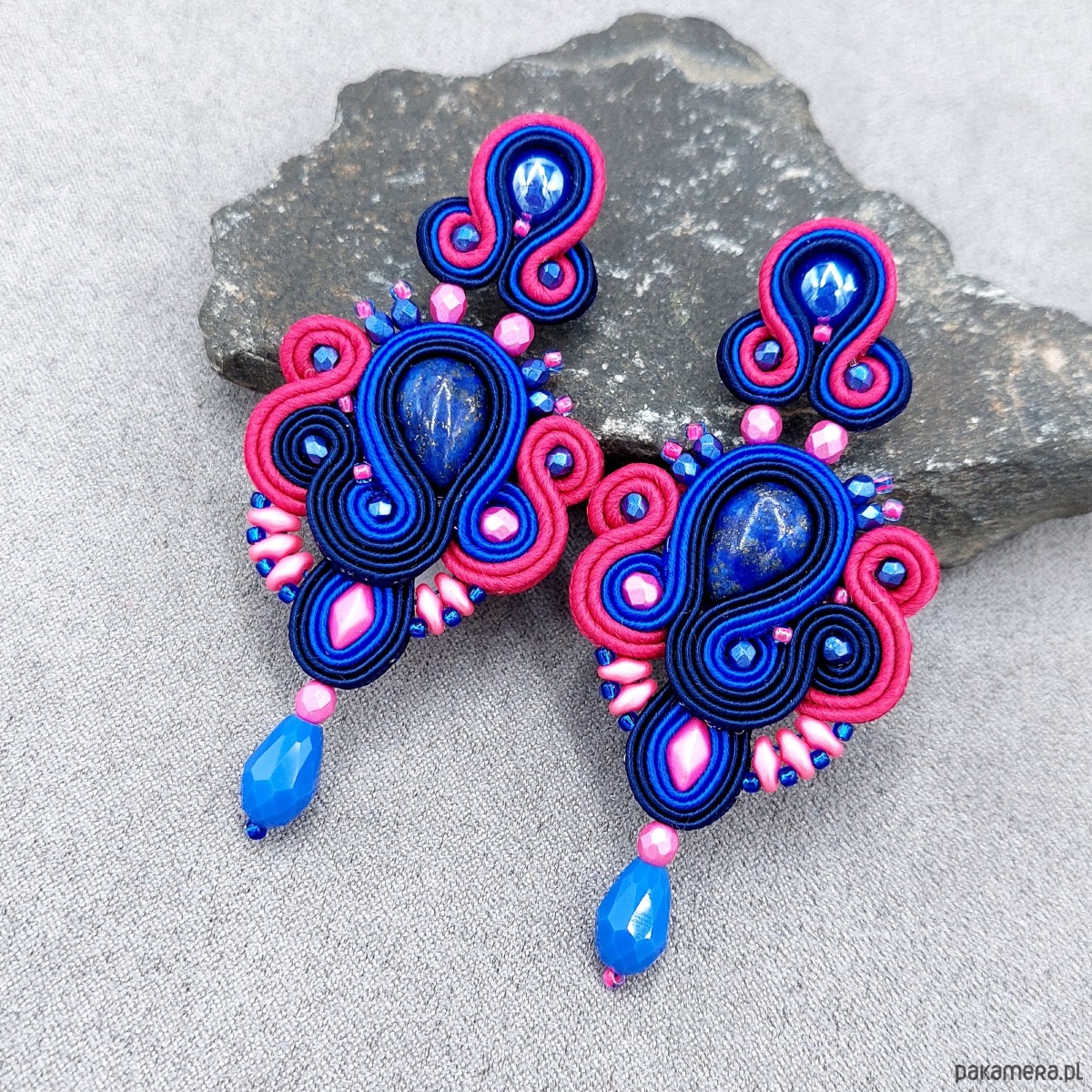 Marita różowo niebieskie letnie kolczyki sutasz z lapisem lazulim