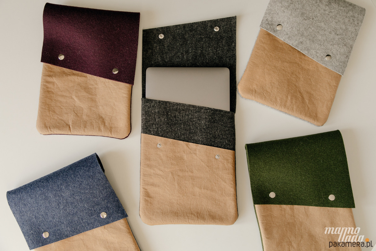 Minimalistyczne etui wykonane z grubego wełnianego filcu w kolorze OBERŻYNY to elegancki pokrowiec do bezpiecznego przechowywania Macbooka. Ma wygodny dostęp od góry i jest lekkie. Z przodu etui posiada kieszonkę z piaskowej washpapy na notatki, telefon lub długopisy, jest zapinane na zatrzaski.