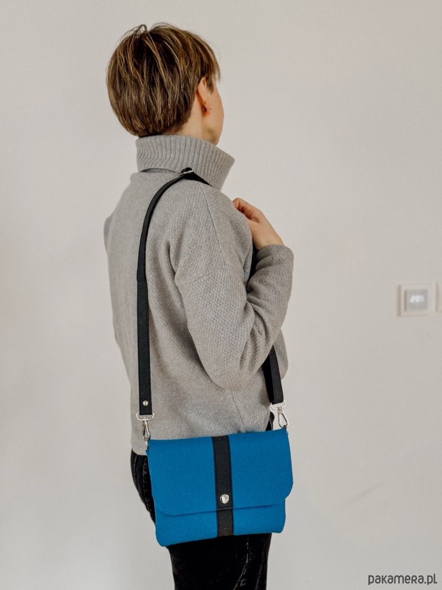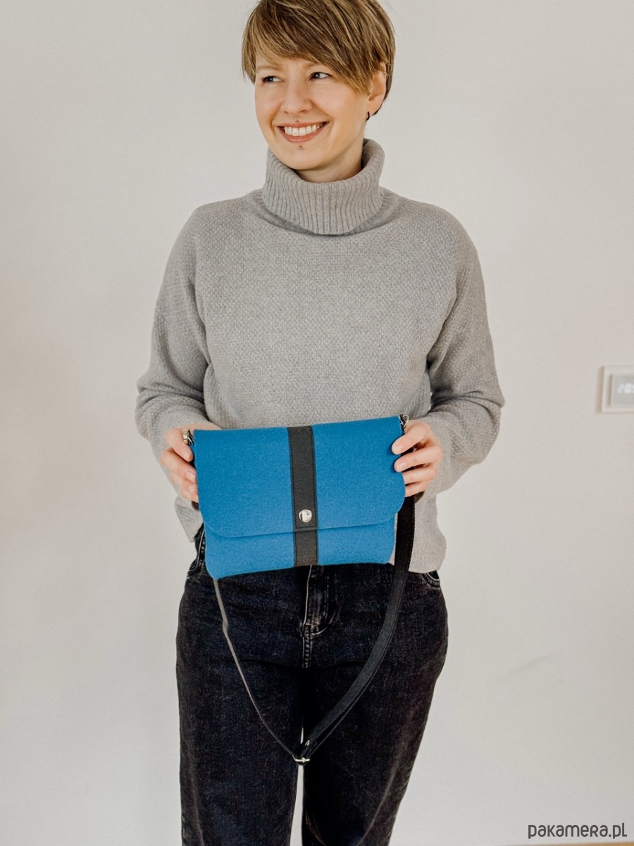 Torebka listonoszka w kolorze CHABROWYM z czarnymi dodatkami