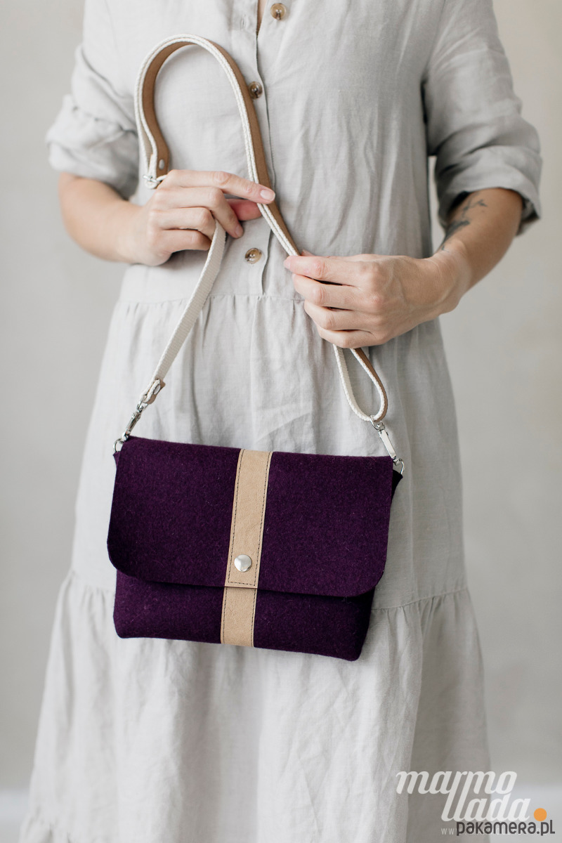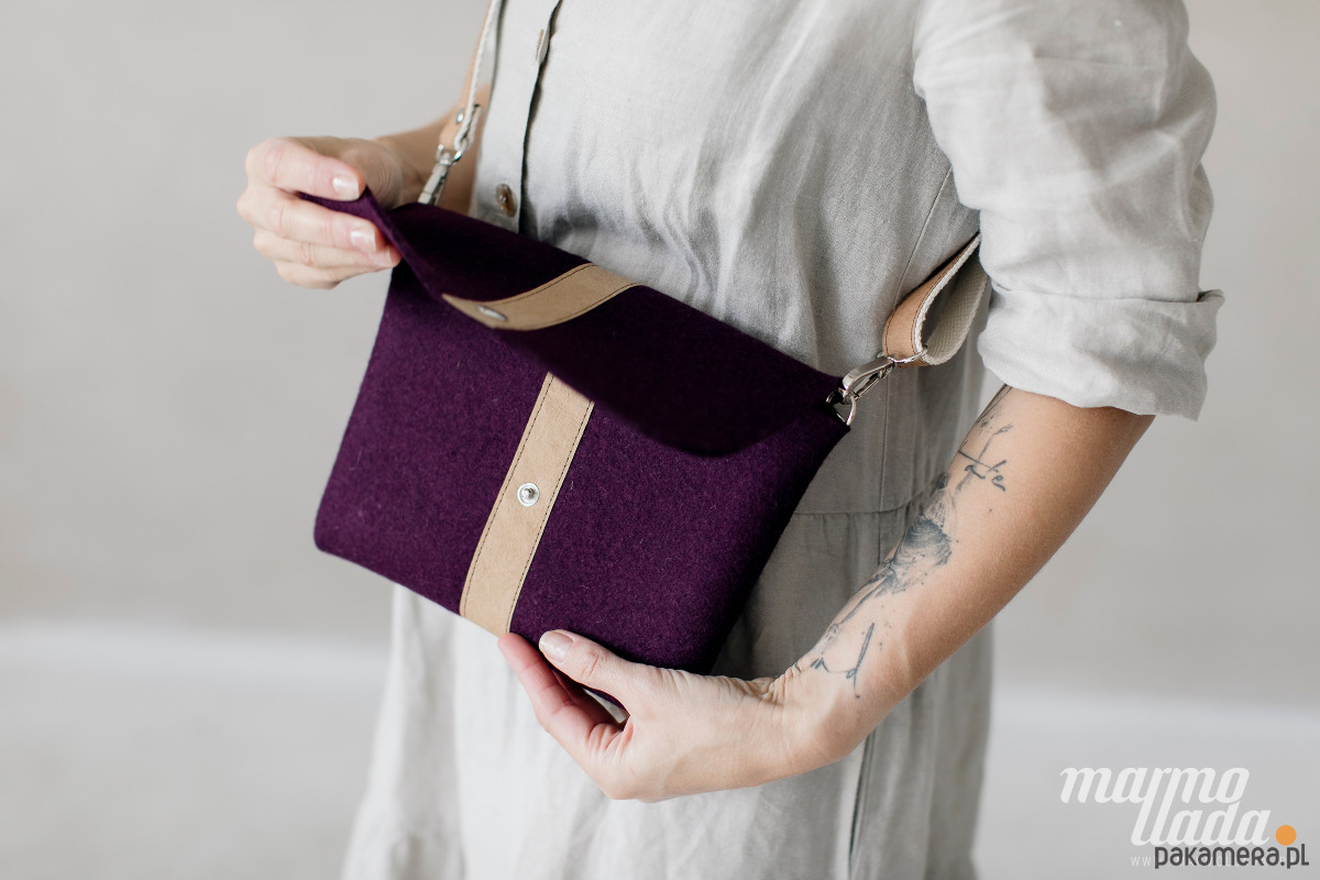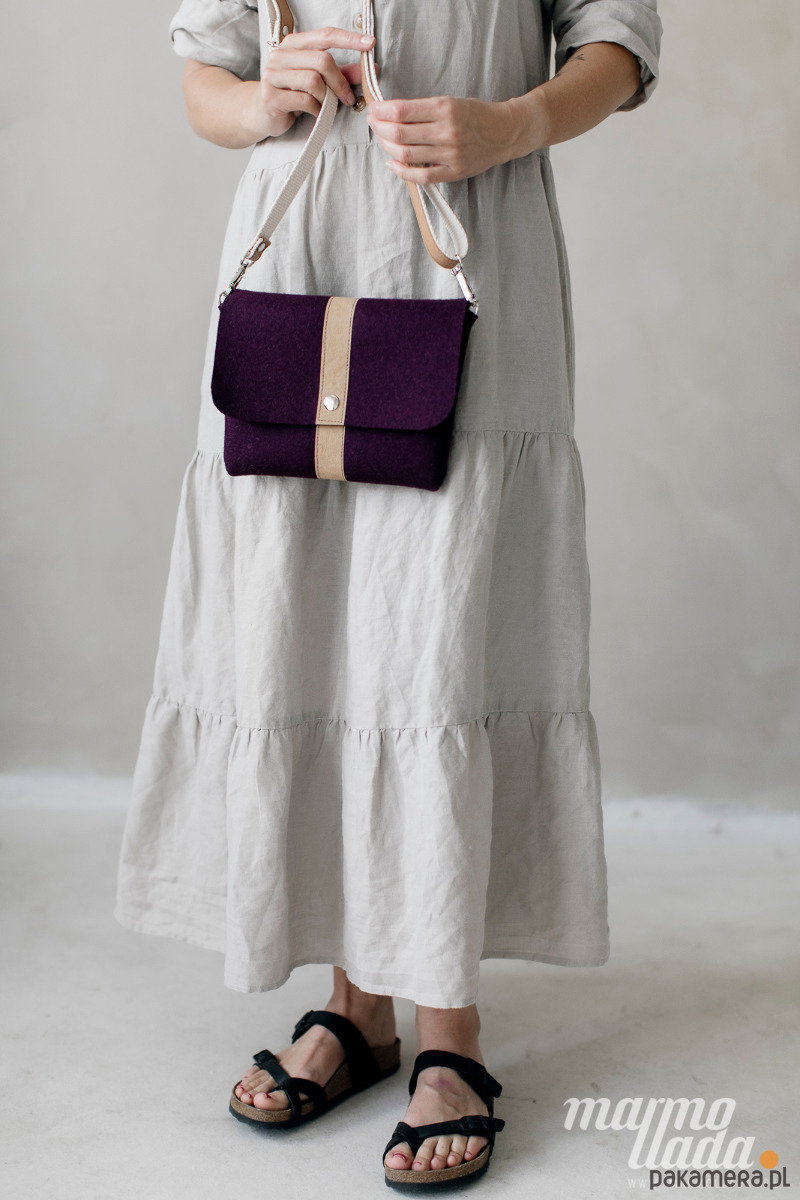 Marmollada - filcowa listonoszka OBERŻYNA + brąz