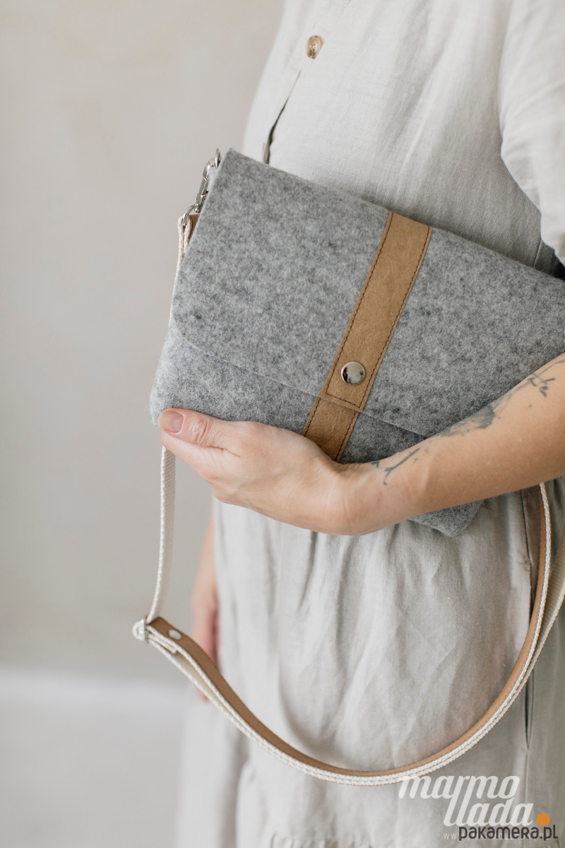 Marmollada - filcowa listonoszka SZARA + brąz
