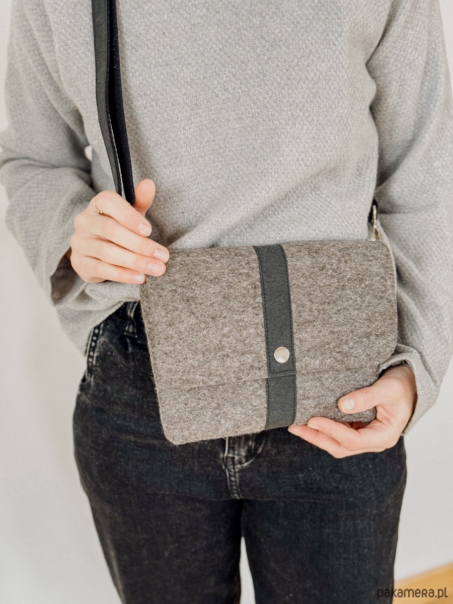 Klasyczna torebka listonoszka uszyta z grubego wełnianego filcu z wewnętrzną kieszenią z washpapy.