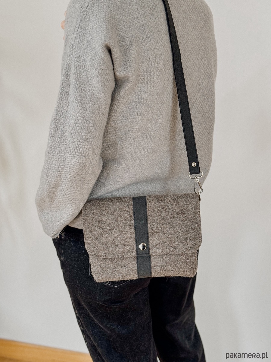 Marmollada - filcowa listonoszka SZAROBRĄZOWA + czarny