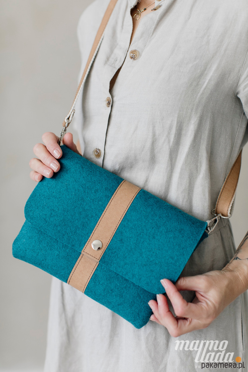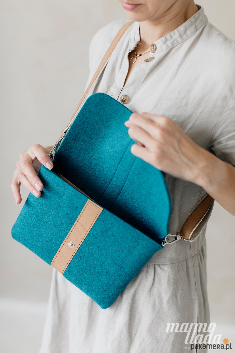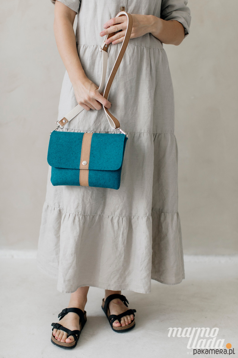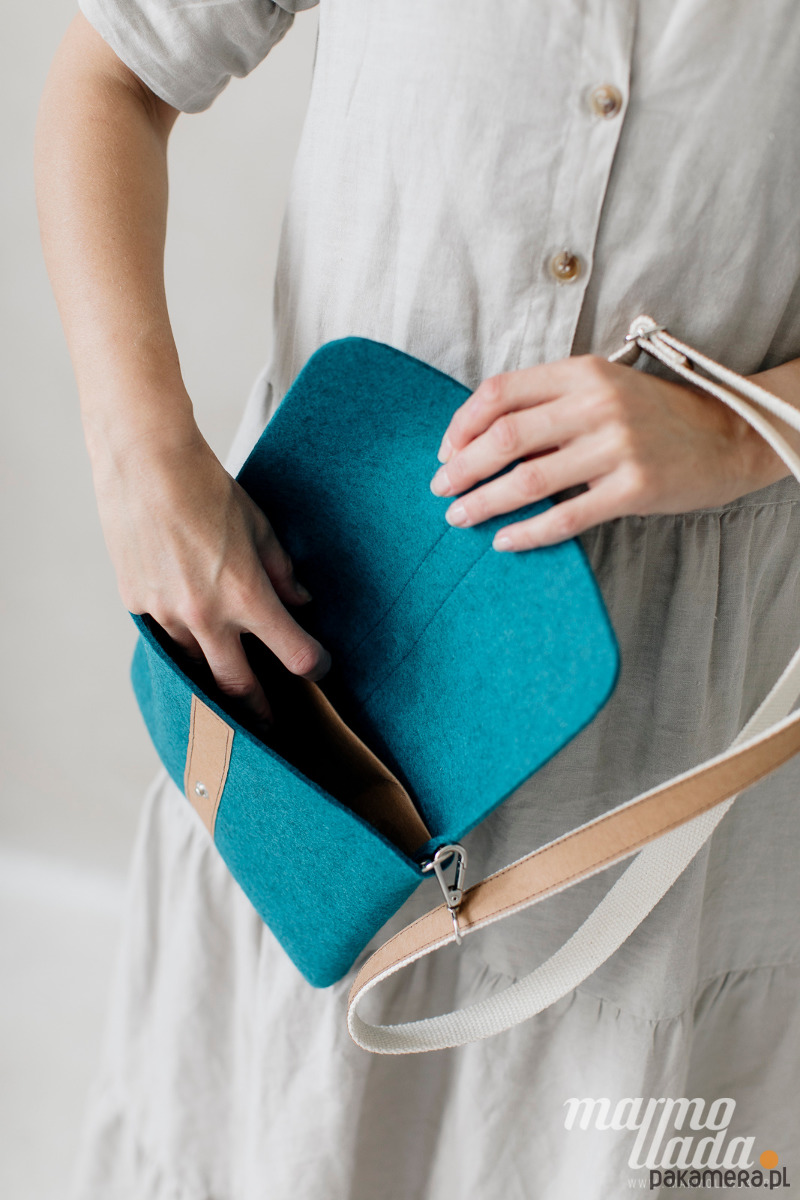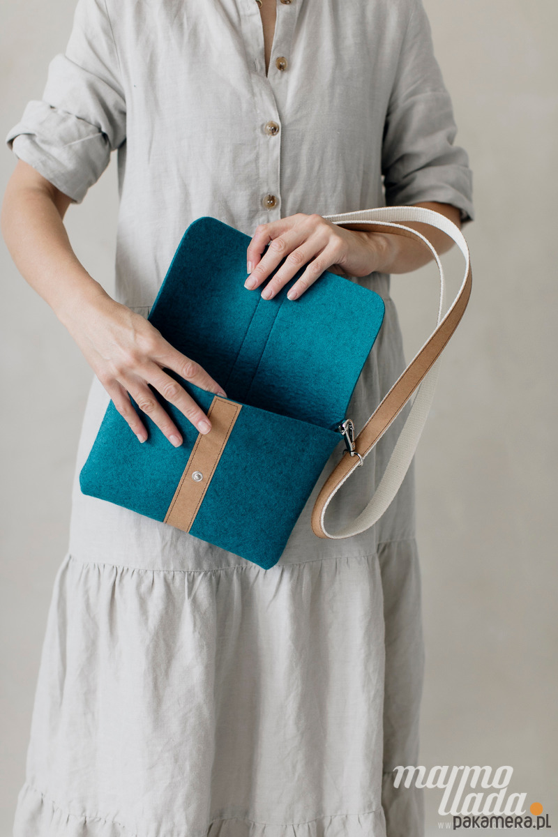Marmollada - filcowa listonoszka TURKUSOWA + brąz