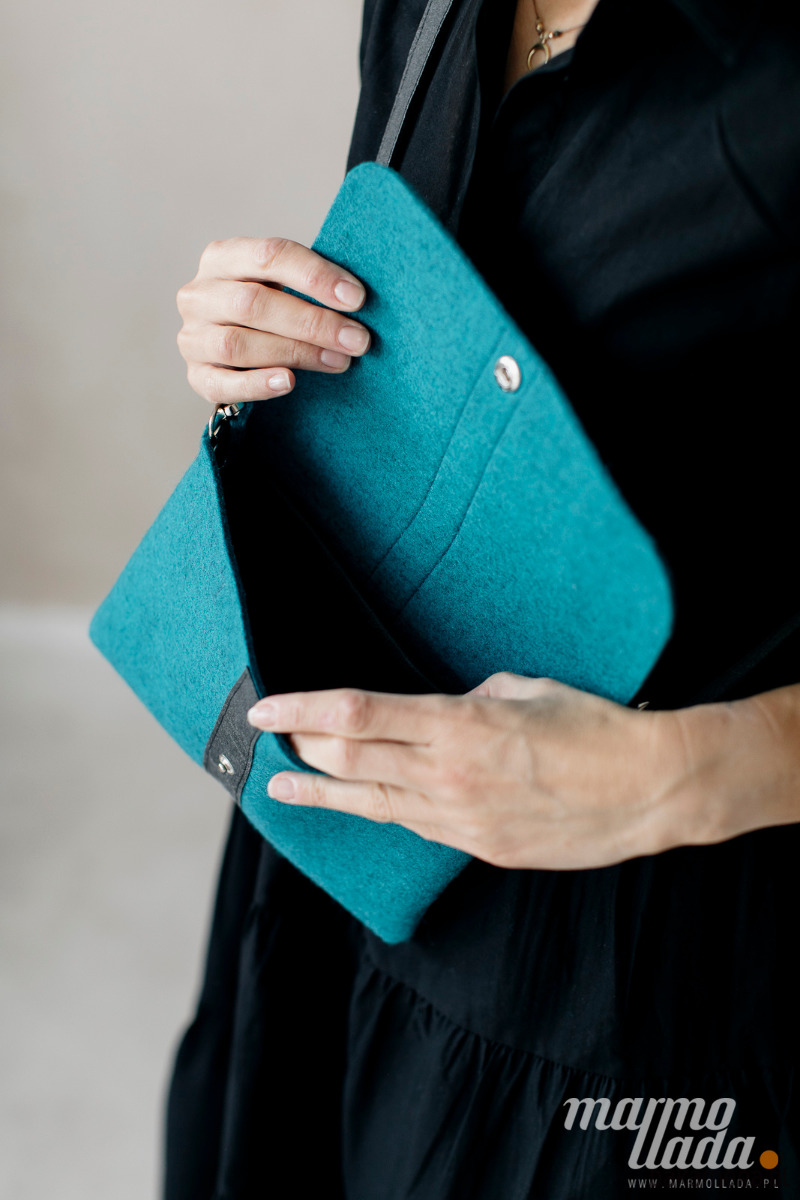 Marmollada - filcowa listonoszka TURKUSOWA + czarny