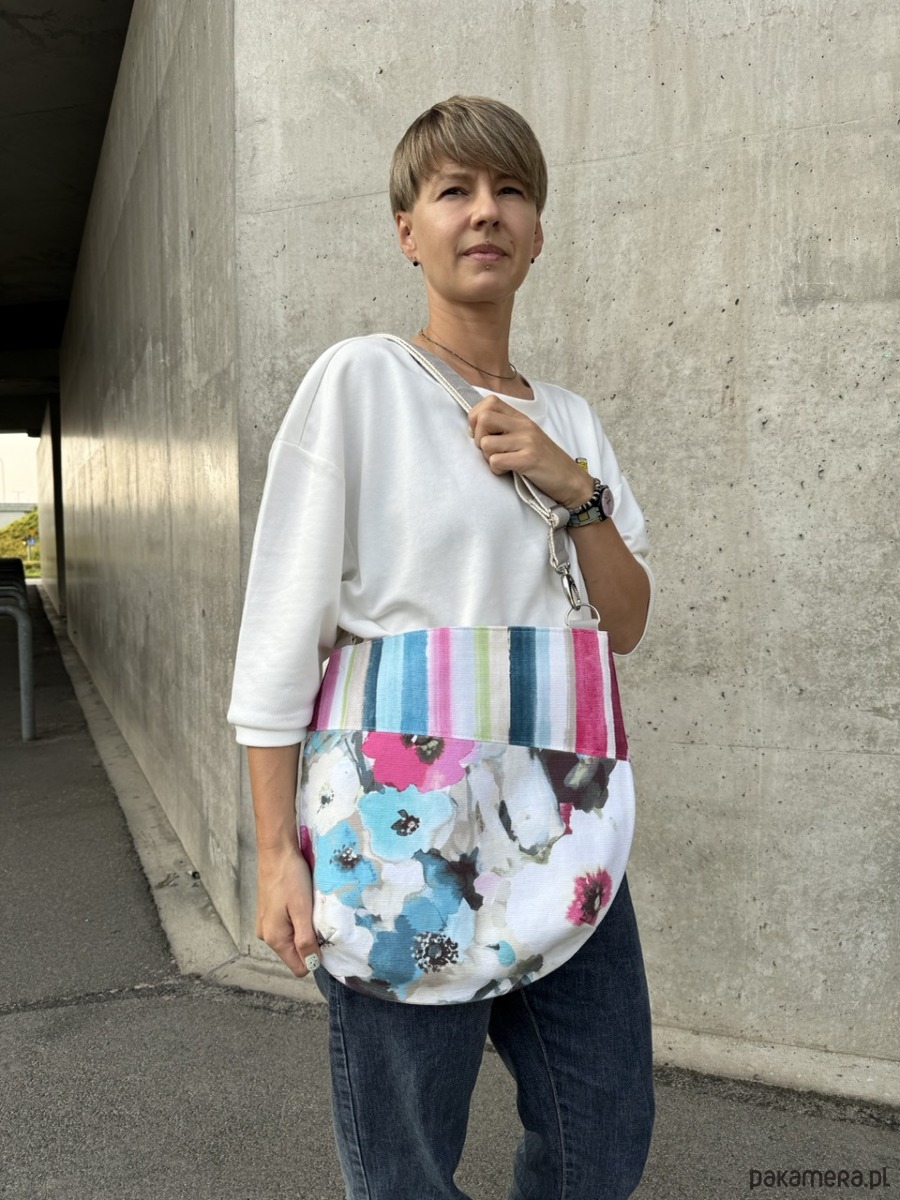 Torebka na ramię tM bawełna polne kwiaty i paski