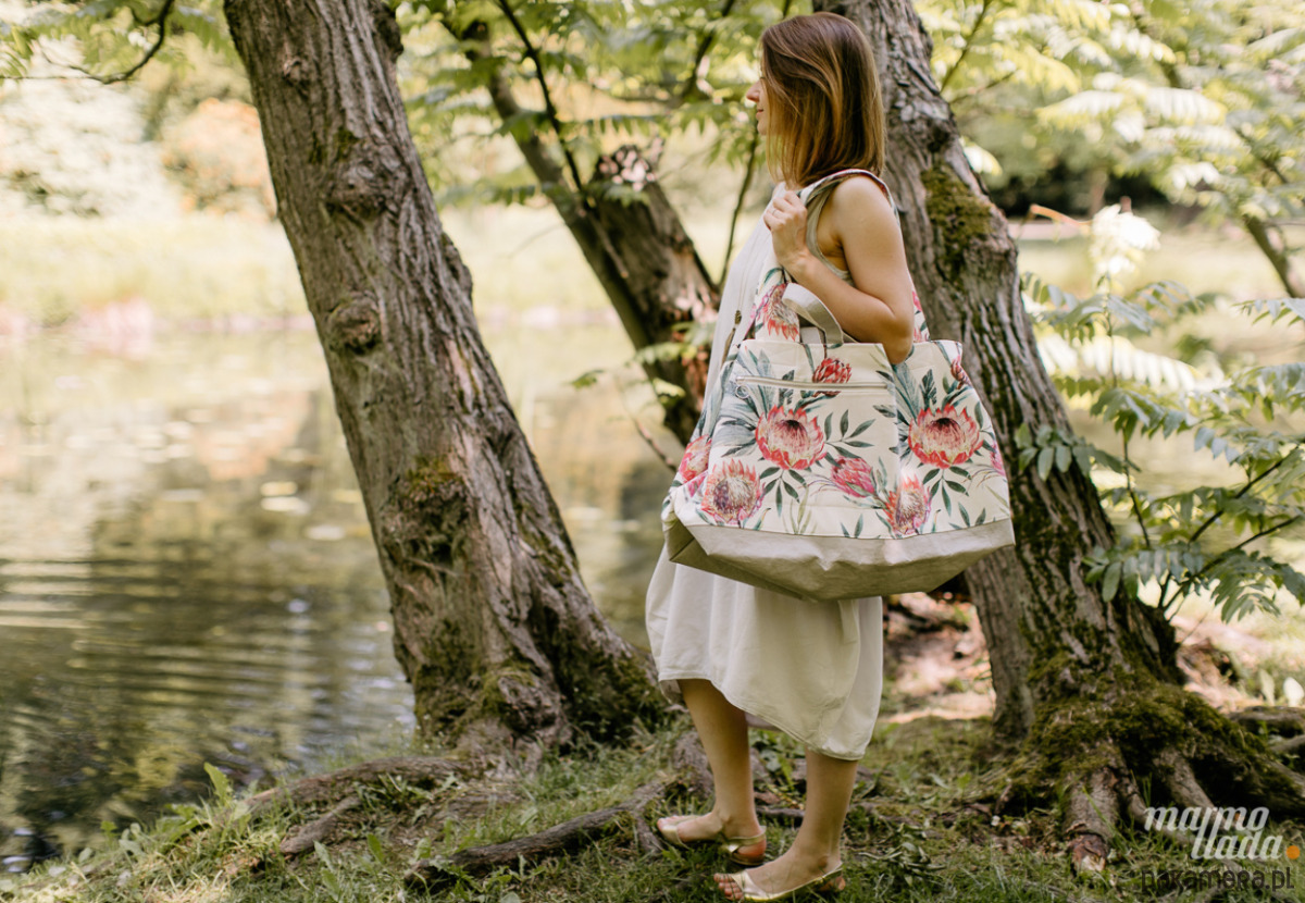 WYMIARY torby bawełnianej w kwiaty protea
