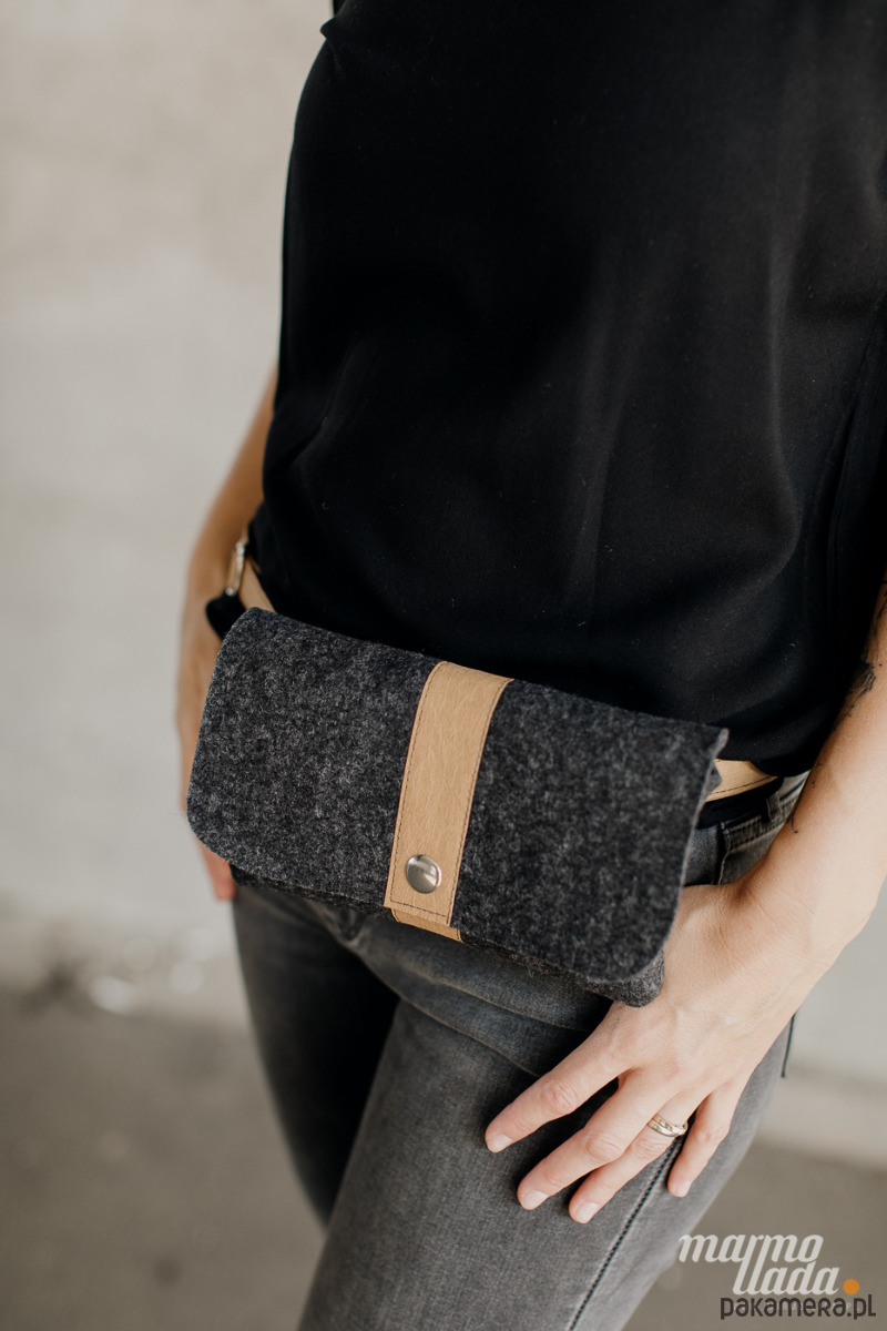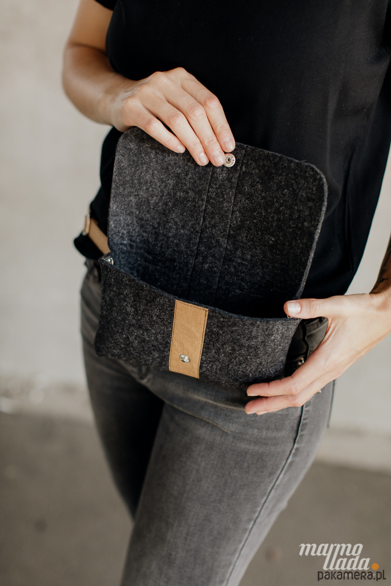 Marmollada - torebka filcowa nerka GRAFITOWA + b