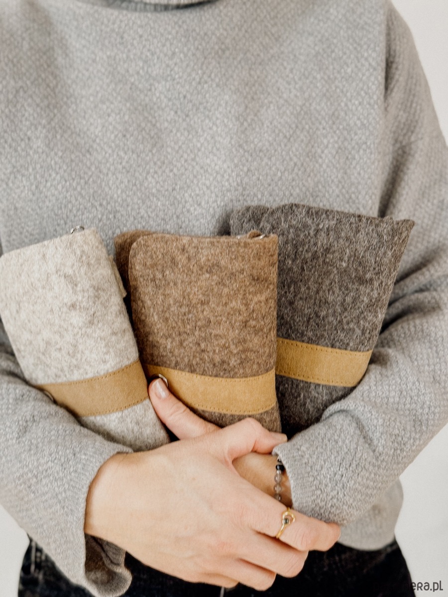 Torebka filcowa mała BEŻOWA z piaskowymi dodatkami, z wewnętrzną kieszonką
