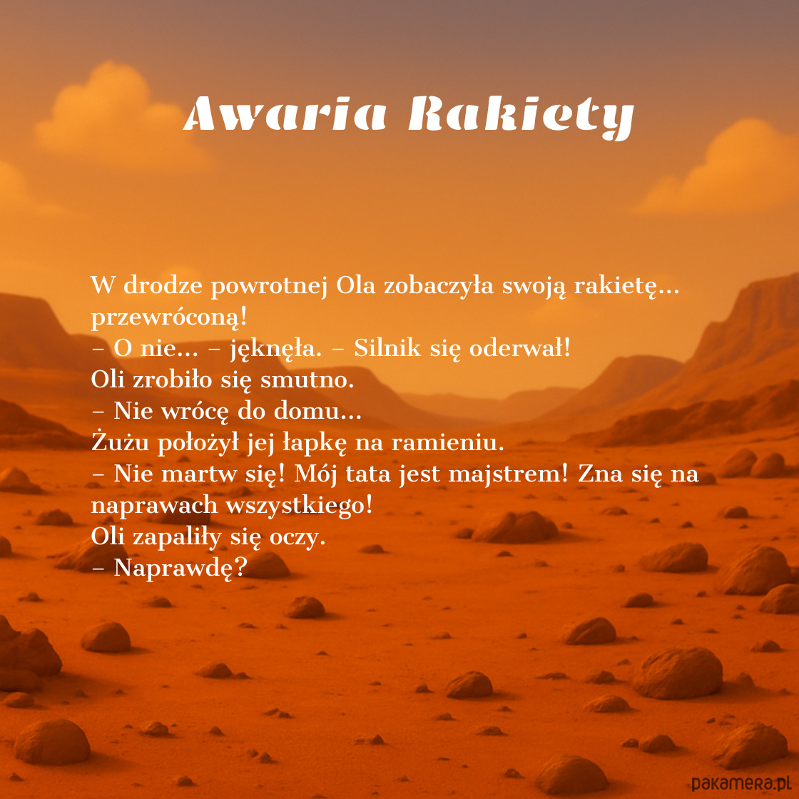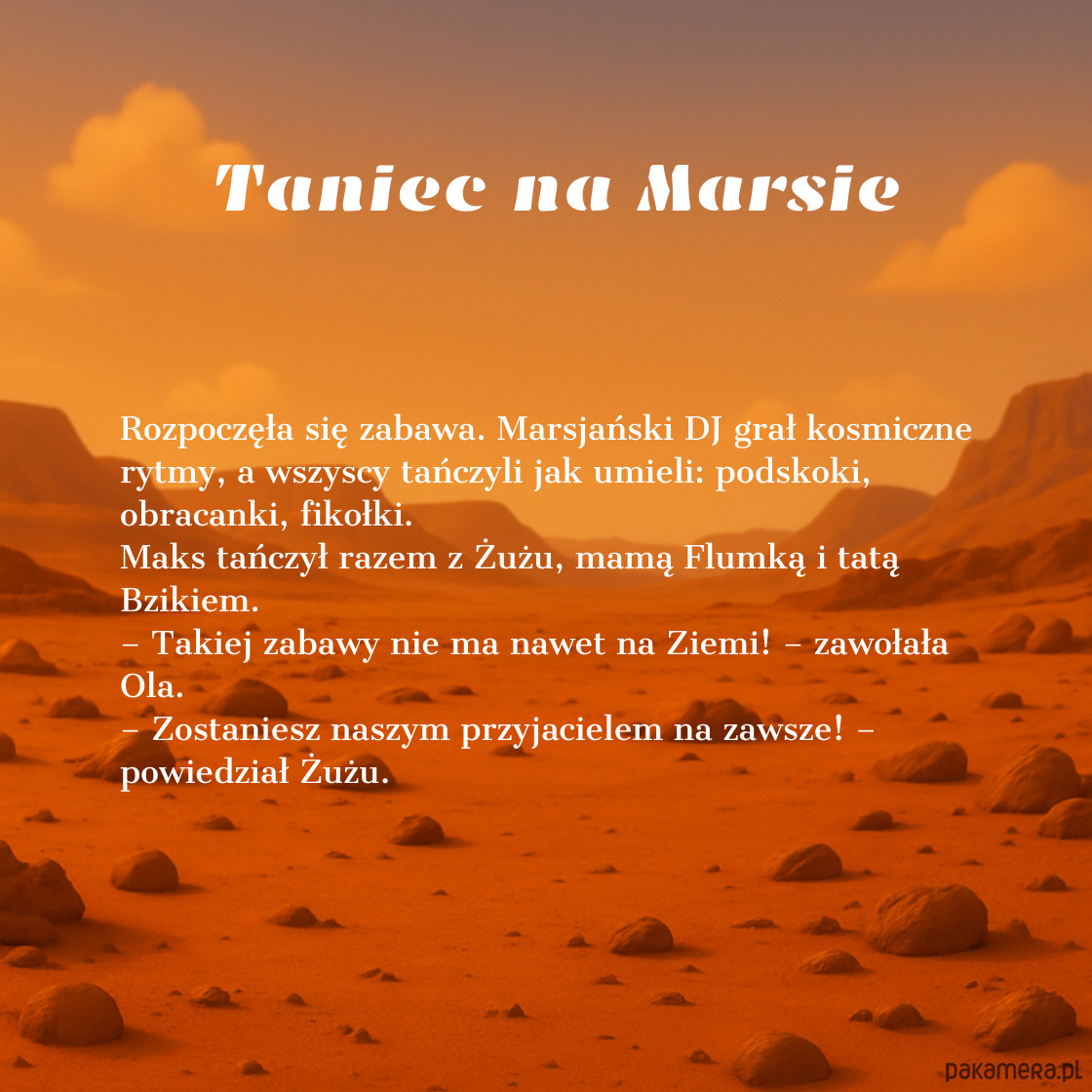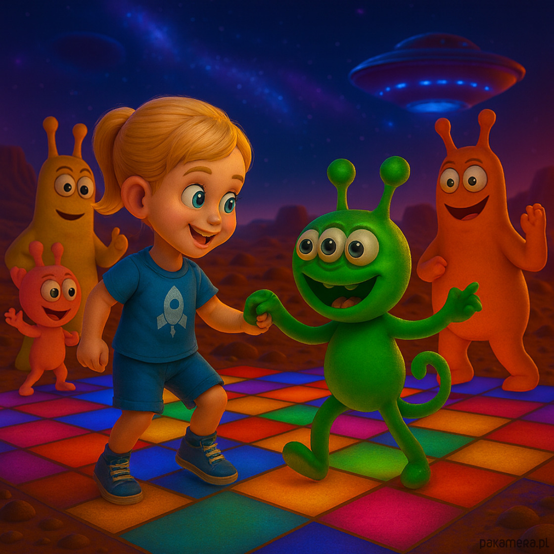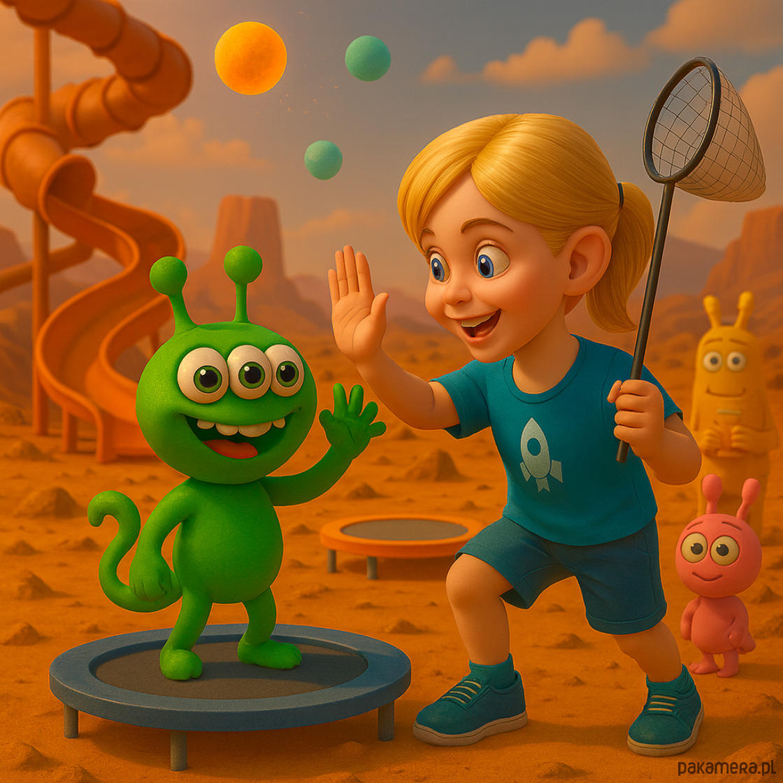 „Marsjańska przygoda Oli” to ciepła, personalizowana opowieść dla najmłodszych. Twoje dziecko startuje rakietą z podwórka, poznaje przyjaznych mieszkańców Marsa, pomaga naprawić statek, a finałem jest radosne przyjęcie urodzinowe marsjańskiego przyjaciela. Każdy z 10 rozdziałów to krótka, zrozumiała historia z odrobiną humoru i prostym morałem – idealna na wieczorne czytanie.