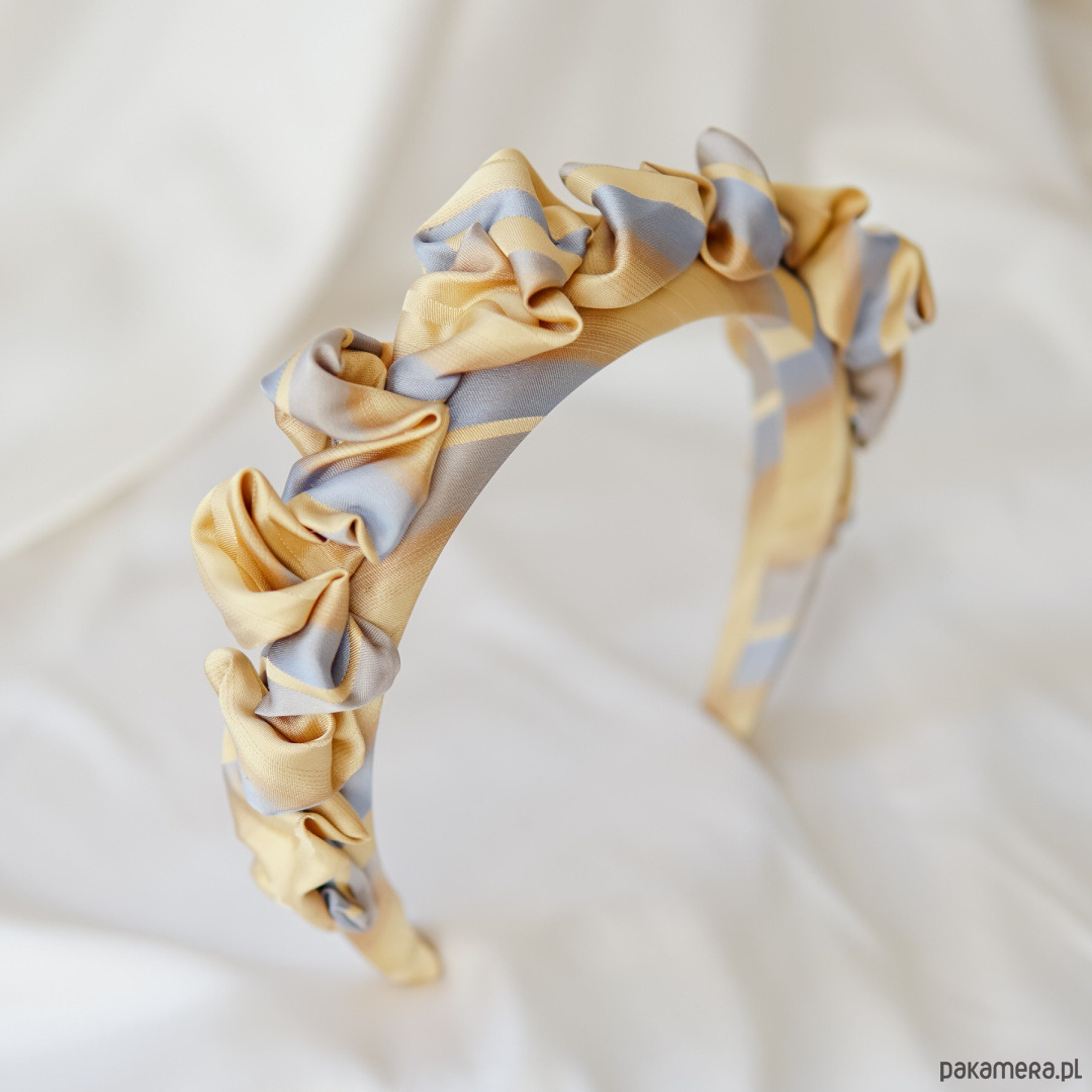 Marszczona opaska z jedwabnego krawata żółć z szarością
