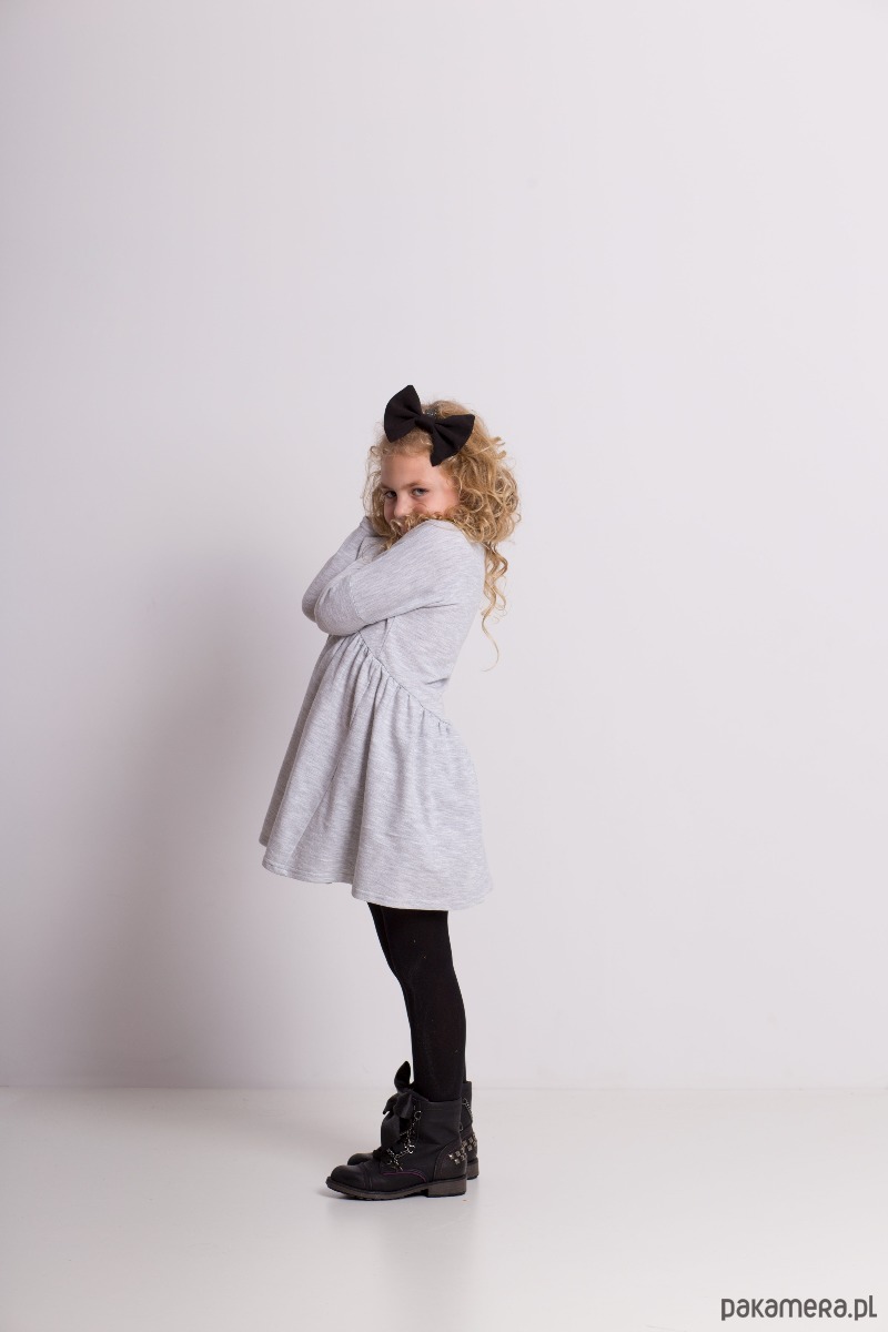 Śliczna luźna sukienka, wykonana ze 100% dzianiny dresowej. Pięknie się układa i jest niesamowicie wygodna, rewelacyjnie wygląda również z kamizelką lub sweterkiem.