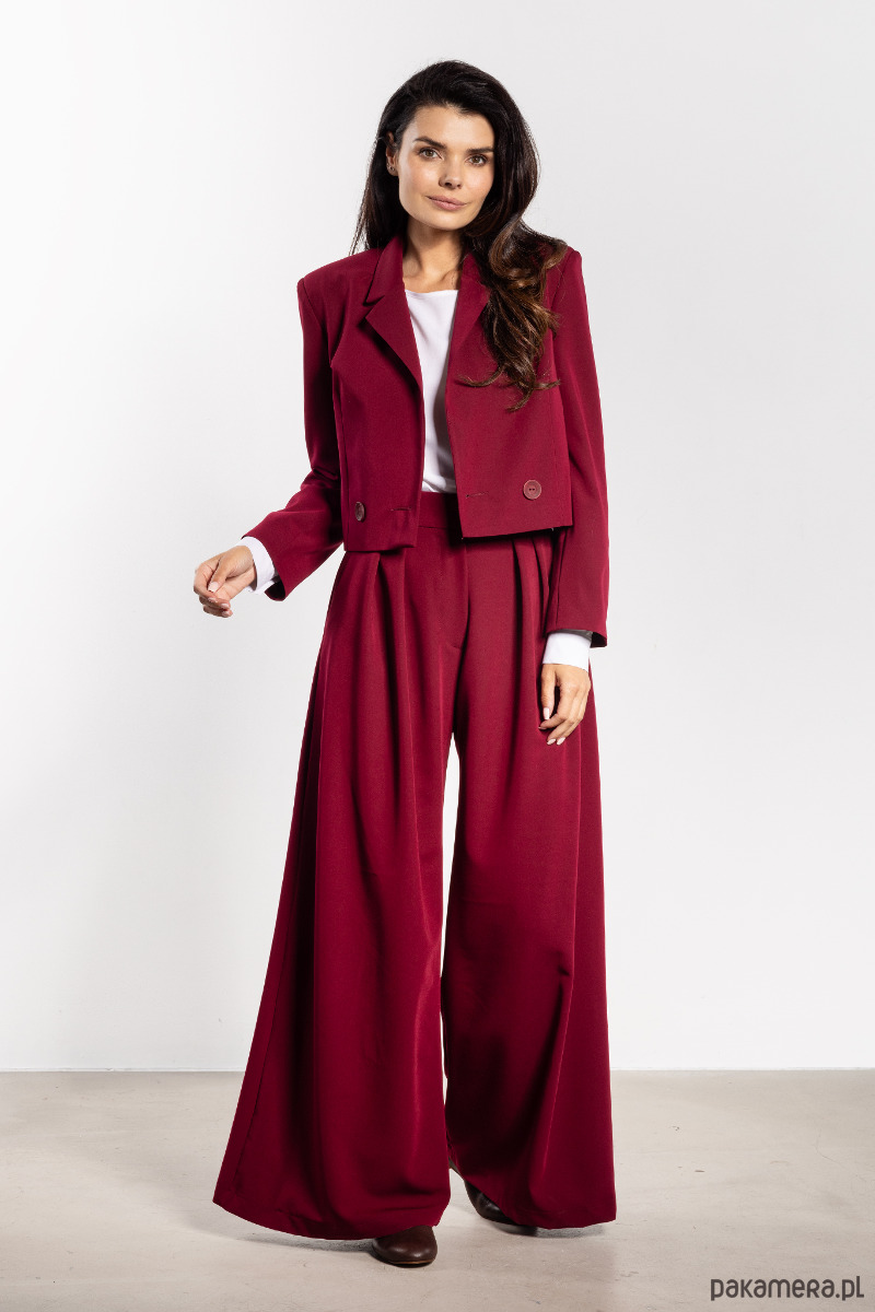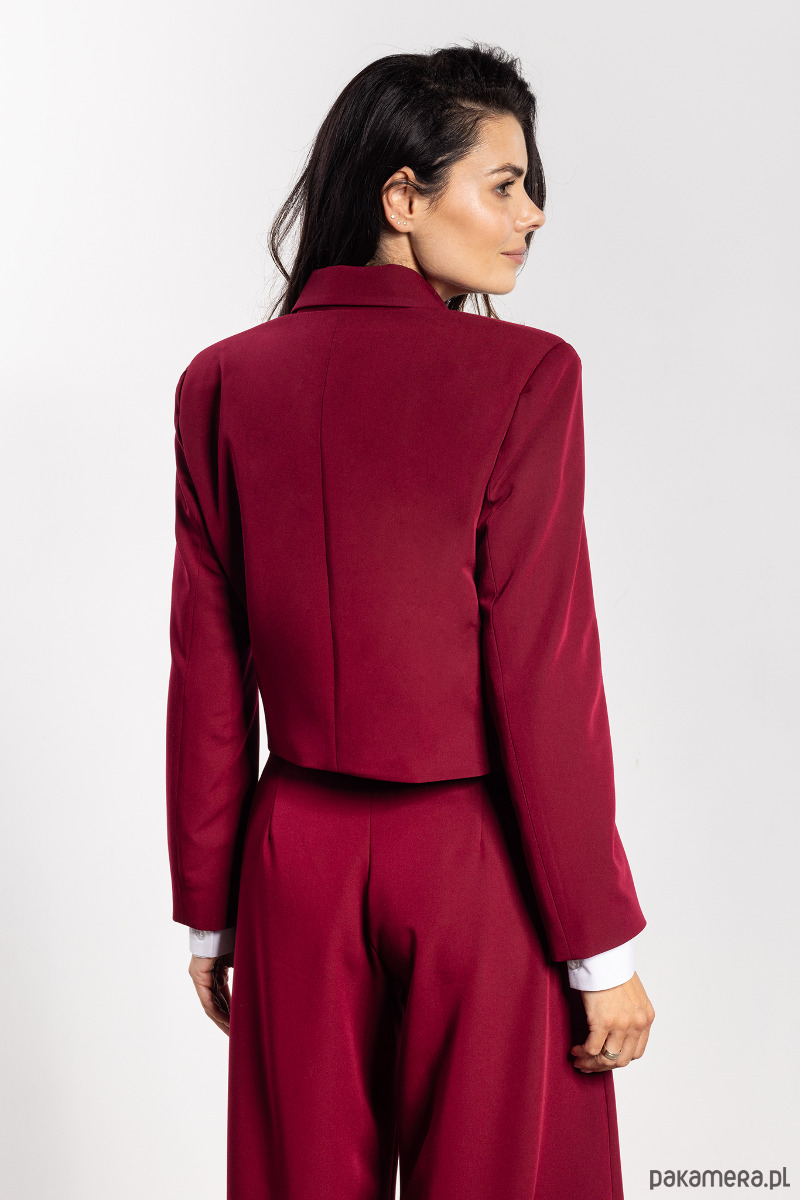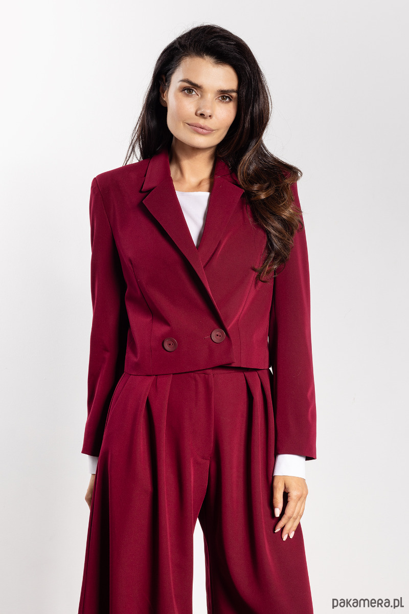 Stylowa marynarka o luźnym kroju łączy klasykę z nowoczesnym charakterem. Krótszy fason nadaje lekkości, a dwurzędowe zapięcie na guziki podkreśla elegancję. Klasyczne klapy i prosta linia ramion sprawiają, że marynarka prezentuje się profesjonalnie i szykownie, jednocześnie zapewniając komfort noszenia. Doskonale komponuje się zarówno z szerokimi spodniami, jak i spódnicą czy sukienką, tworząc uniwersalny i efektowny look na różne okazje.