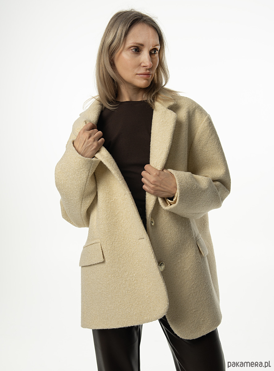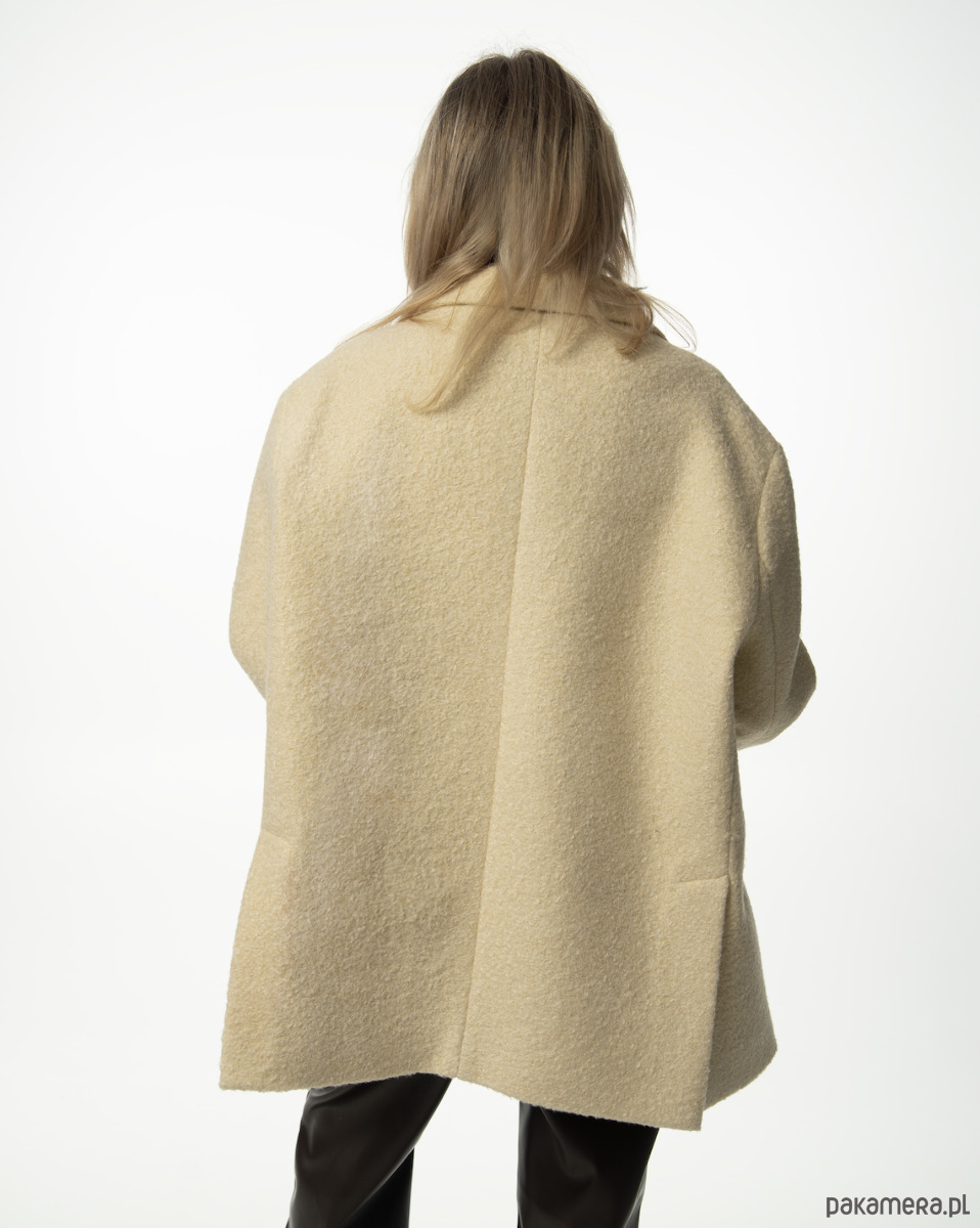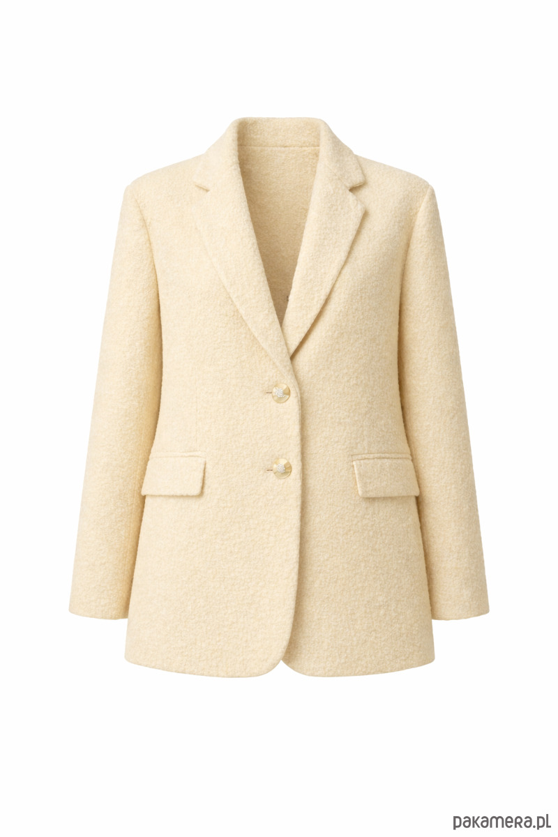 Z marynarką boucle doskonale komponuje się nasza spódniczka z tej samej tkaniny – razem tworzą stylowy i kobiecy komplet w kolorze ecru. Połączenie klasycznego kroju żakietu z subtelną linią spódnicy podkreśla sylwetkę i nadaje całości wyjątkowej elegancji.