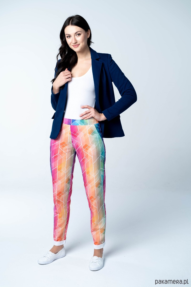 Marynarka została ozdobiona atrapami kieszeni z klapą. Do tego te kolory! Wybierz pełną energii fuksję, klasyczny głęboki granat albo tęczową feerię barw.