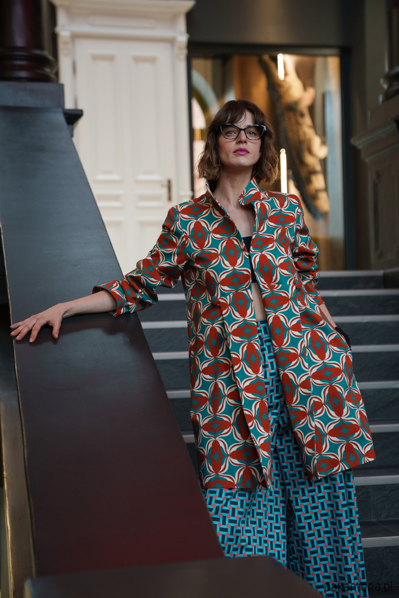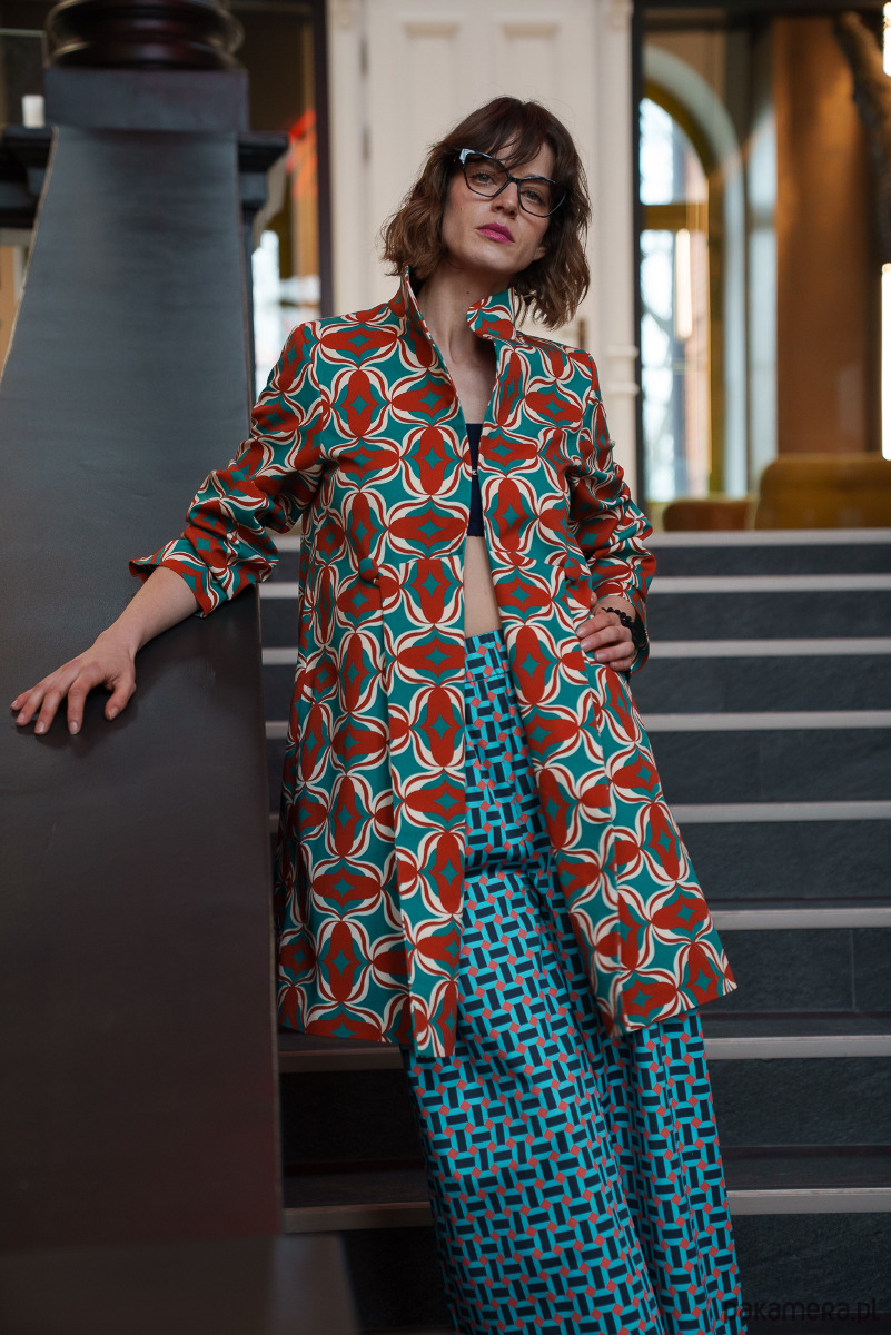 Elegancja i komfort spotykają się w tej wyjątkowej marynarce, która łączy klasykę z nowoczesnym stylem. Marynarka Długa na Stójce Wzór to propozycja dla osób ceniących sobie wysoką jakość, a także oryginalność w modzie. Jej prosty, ale zarazem unikalny krój sprawia, że doskonale komponuje się zarówno w casualowych, jak i bardziej formalnych stylizacjach. Długa forma, sięgająca nieco poniżej bioder, nadaje sylwetce smukłości, a stójka na kołnierzu dodaje całości charakteru, łącząc elegancję z subtelną ekstrawagancją. Idealna do szerokich spodni.