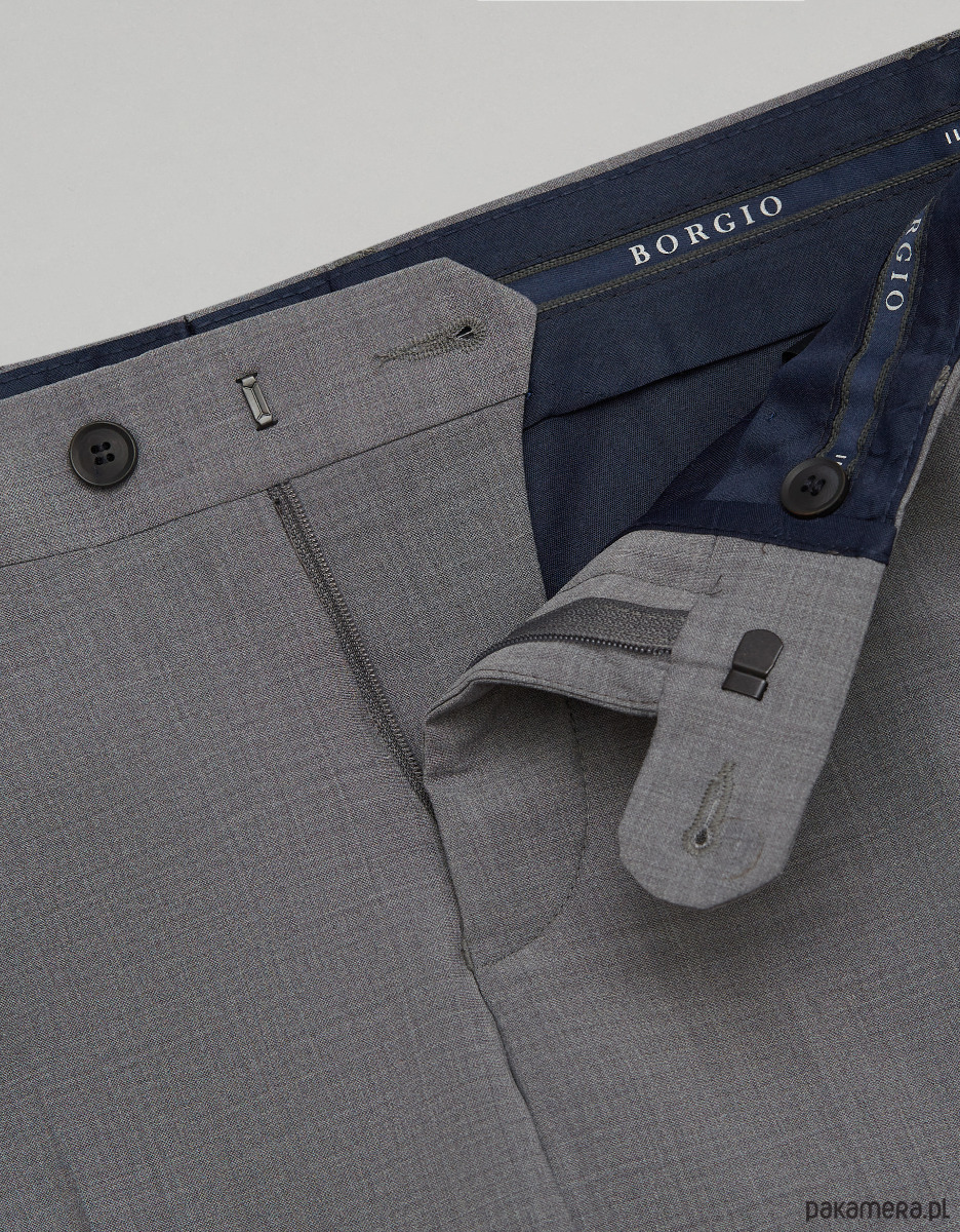 Eleganckie spodnie męskie saluzzo szary slim fit spodnie saluzzo szary slim fit 170 86Ponadczasowe spodnie Saluzzo w kolorze szarym zostały wykonane z wysokiej jakości wełnianej tkaniny (w połączeniu z włóknami syntetycznymi oraz elastanem). Lekko zawężony krój idealnie dopasuje się do sylwetki. Gładkie szare spodnie to must have w szafie każdego mężczyzny.