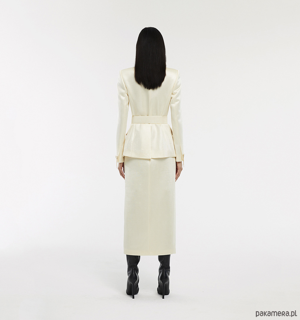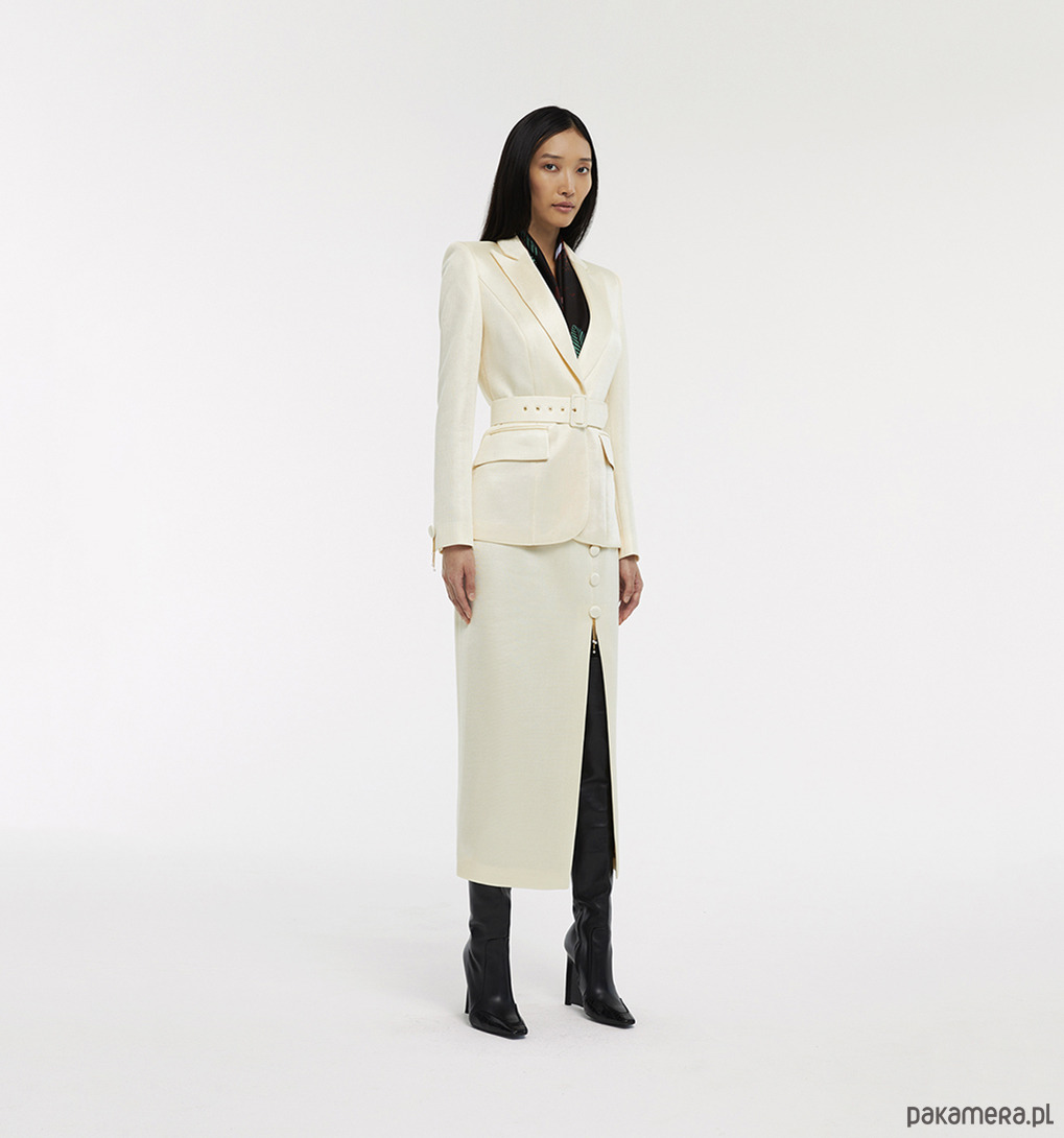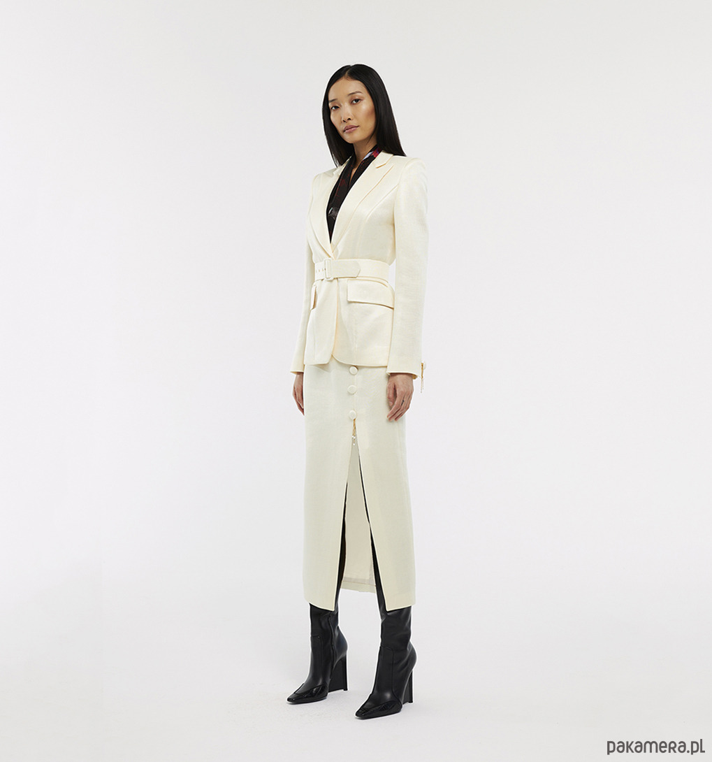 Dopasowana marynarka z paskiem z pięknej połyskującej tkaniny.