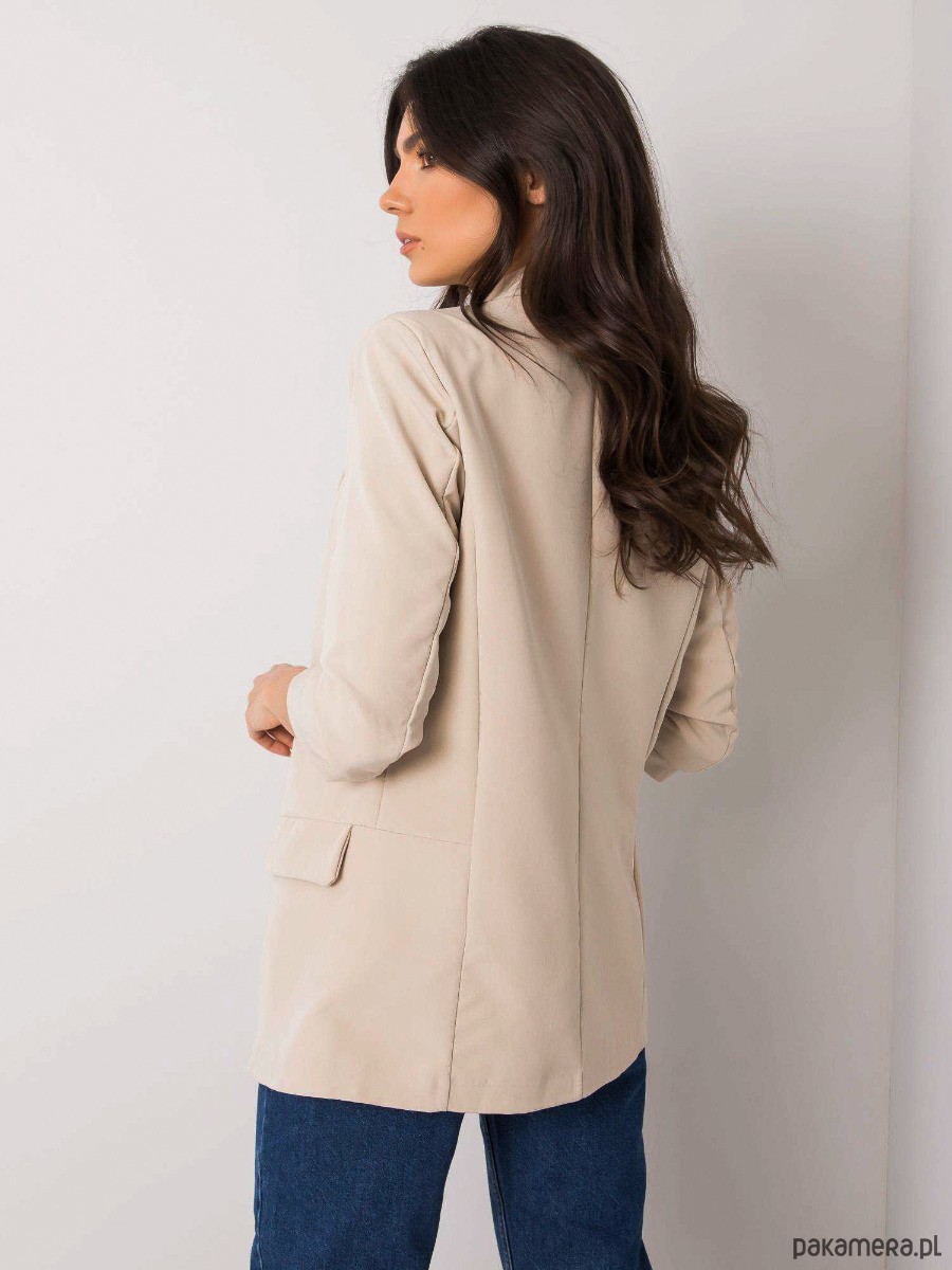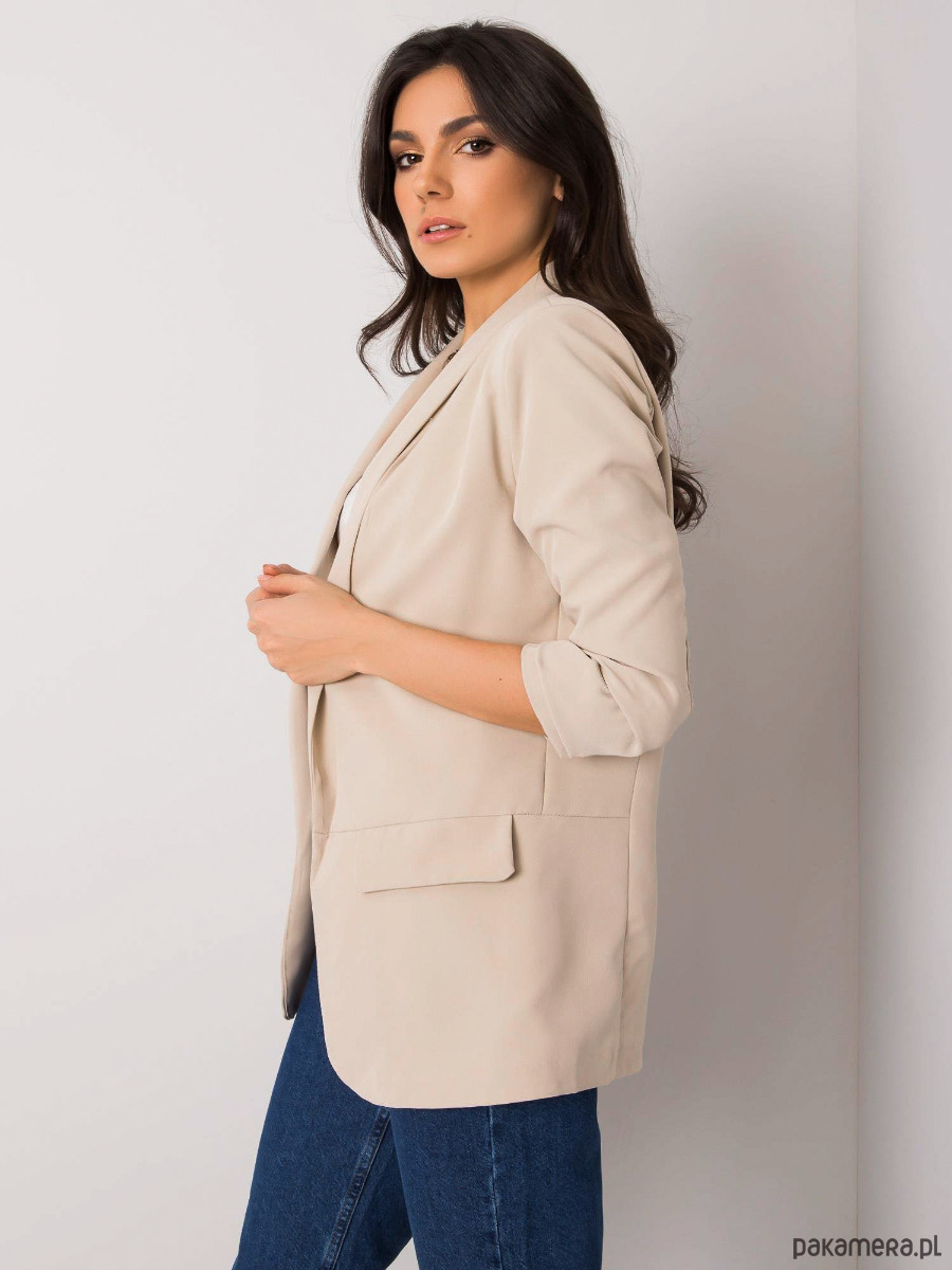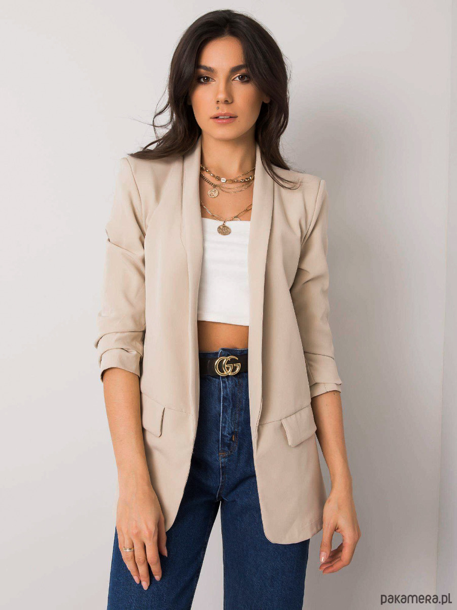 Ponadczasowa, damska marynarka o nieco dłuższym kroju w kolorze beżowym. Świetnie sprawdzi się do klasycznych stylizacji z jeansami, ale także na większe wieczorne wyjścia.