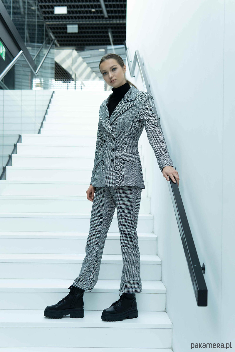 Przedstawiamy Wam naszą Czarno-białą marynarkę w pepitę. Geometryczny wzór sprawi, że Twój look będzie perfekcyjny, a klasyczny krój doda Twojej stylizacji ponadczasowego szyku.